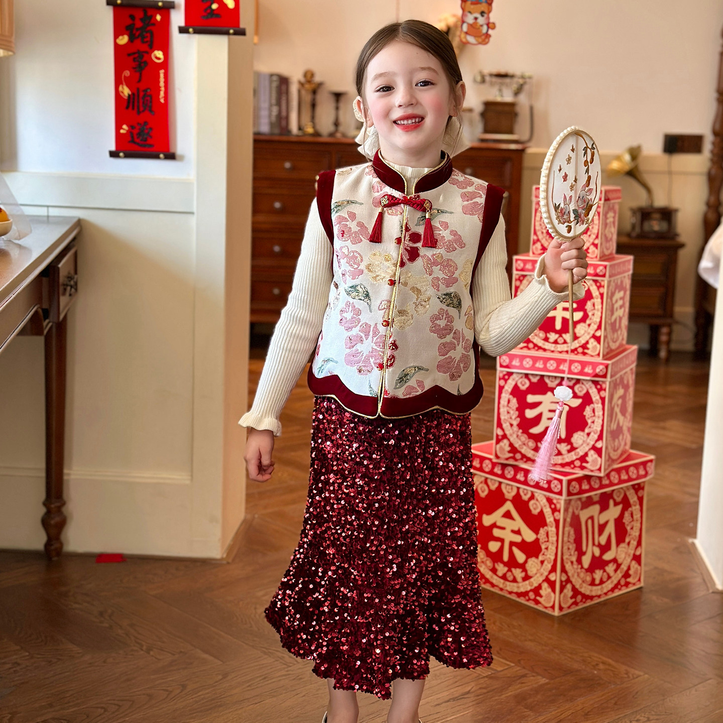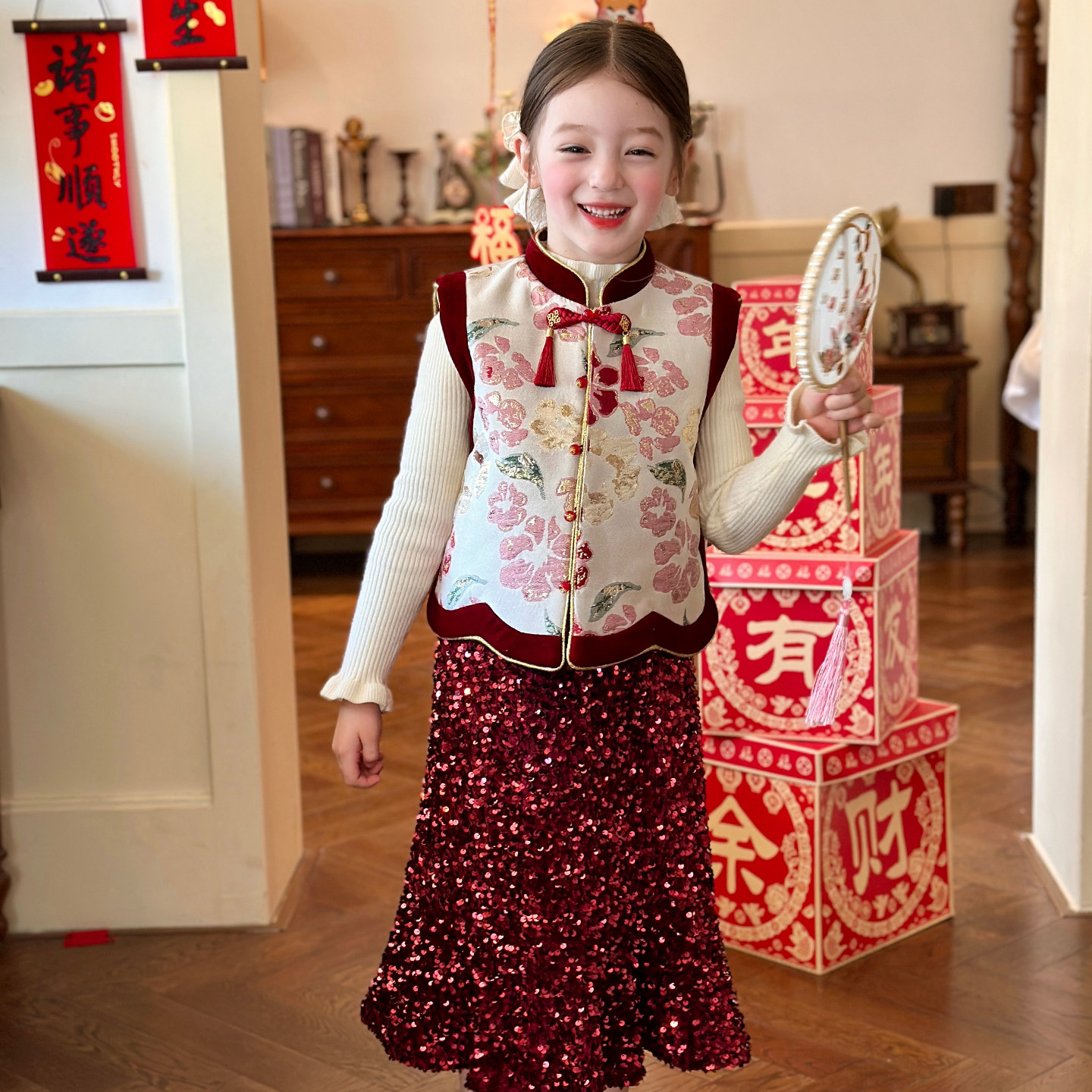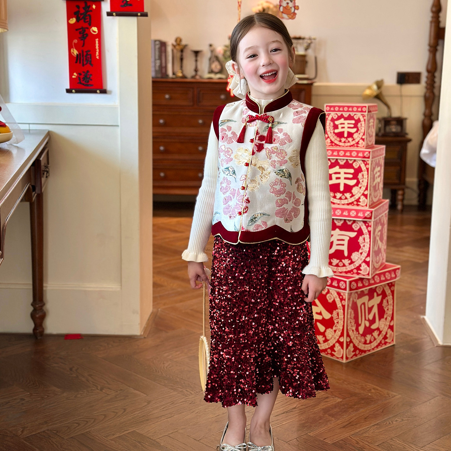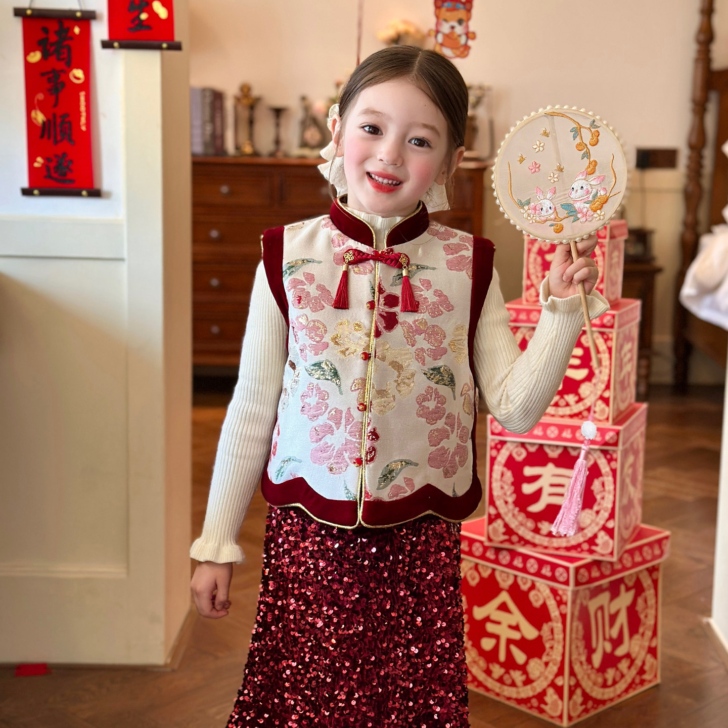 栀了成长记童装女童国风套装马甲2025冬季儿童新中式夹棉新年上衣