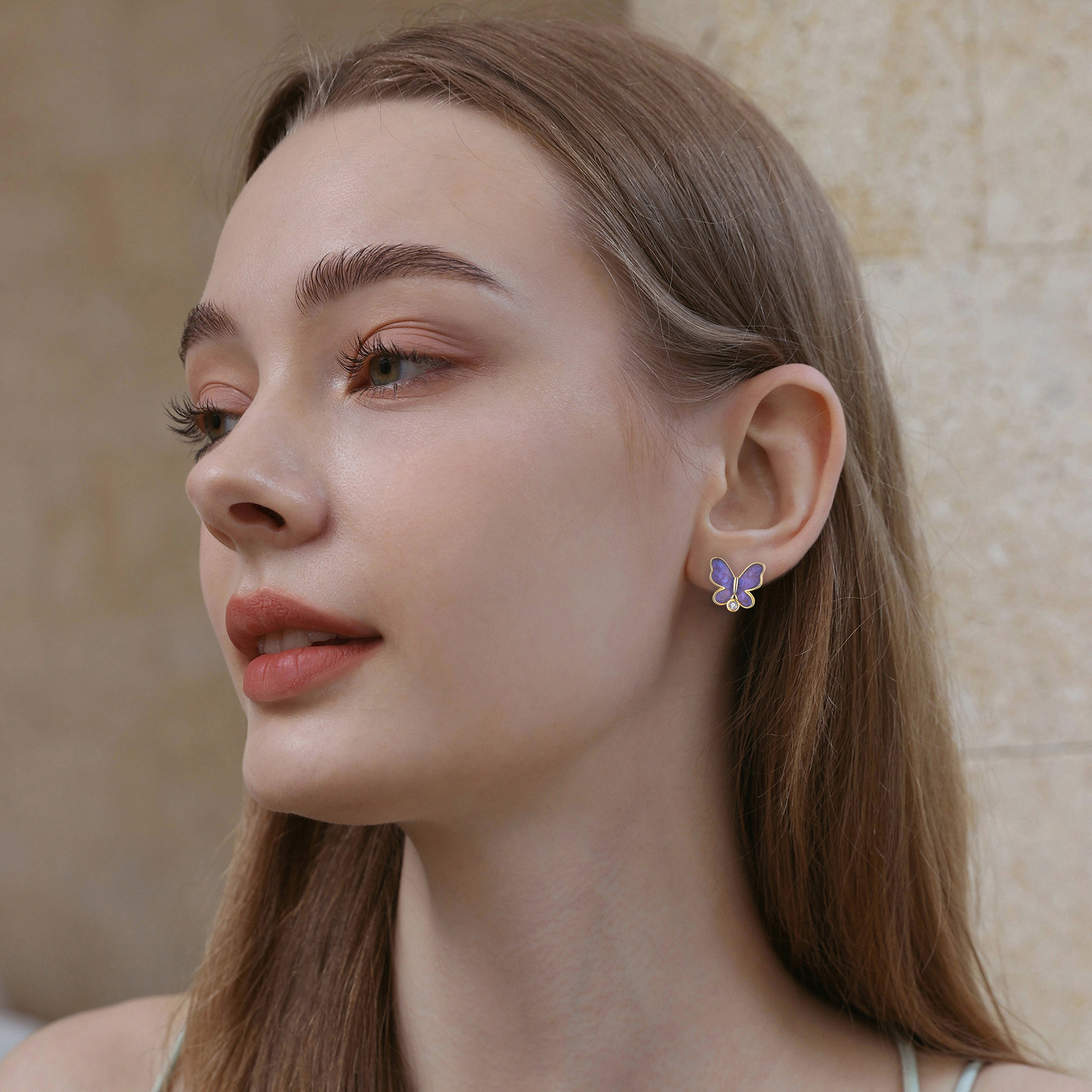 HD鎏金蝴蝶耳钉紫色浪漫高级感