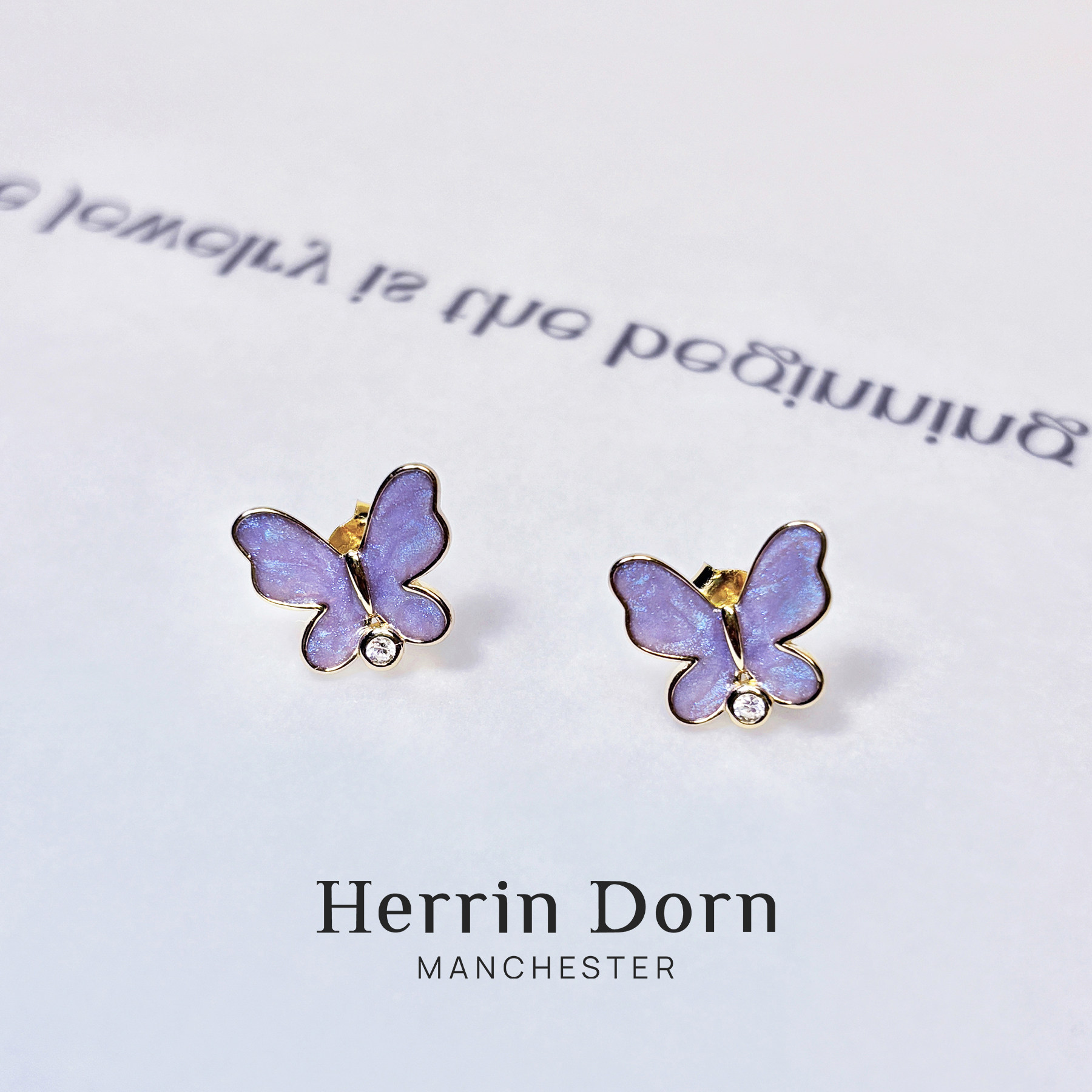 Herrin Dorn 赫琳德 鎏金蝴蝶耳钉耳环耳饰 紫色浪漫高级感18K金