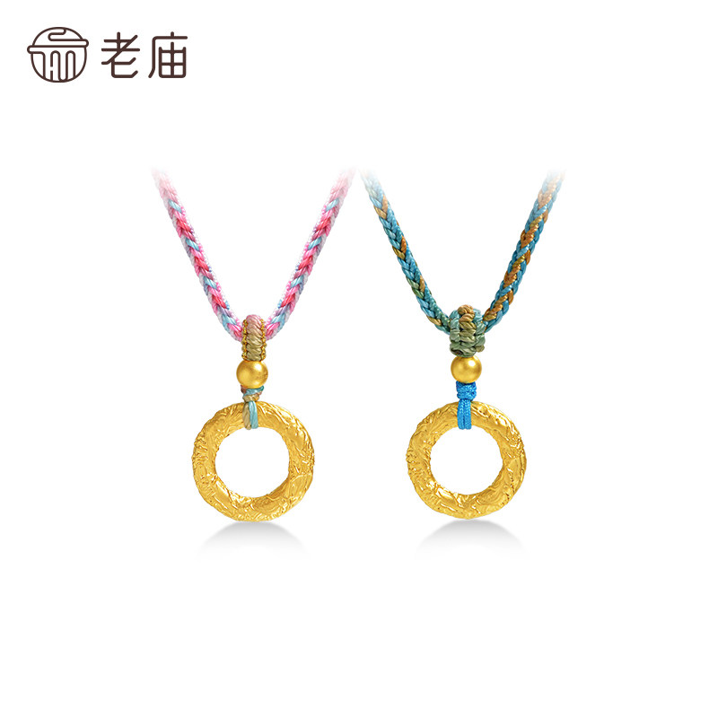 老庙黄金足金祥云乾坤圈平安扣挂坠5D精致立体情侣款男女佩戴百