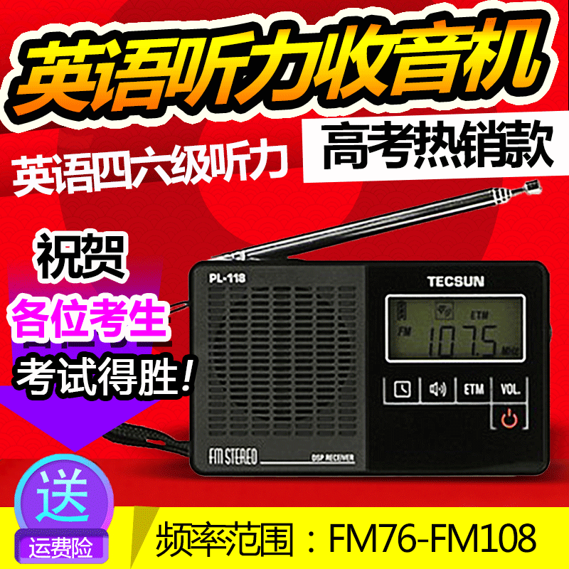 Tecsun德生PL-118英语四六级听力收音机校园广播fm调频迷你袖珍式