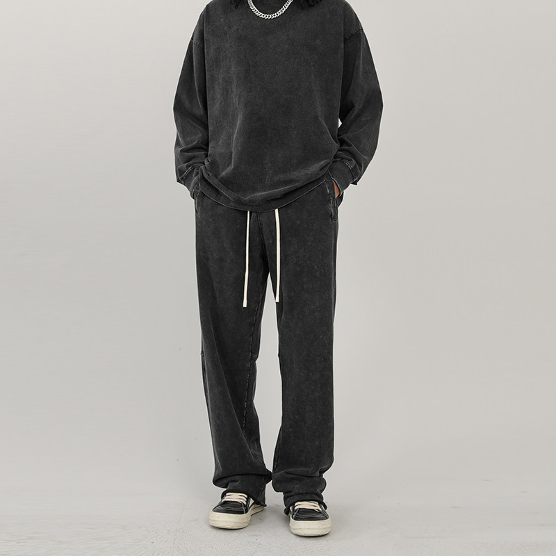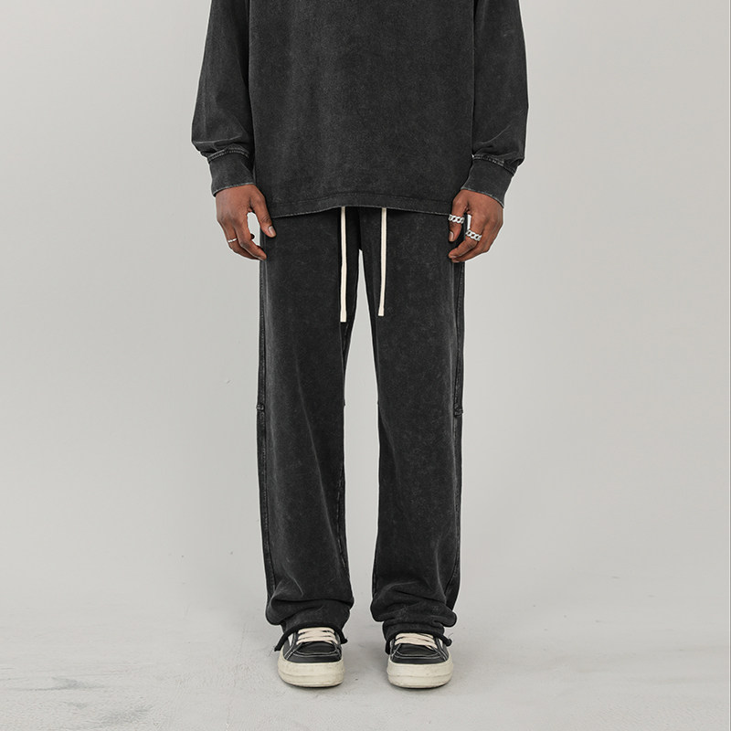 2024春夏350G重磅水洗做旧复古hiphop爵士长裤情侣裤子运动裤