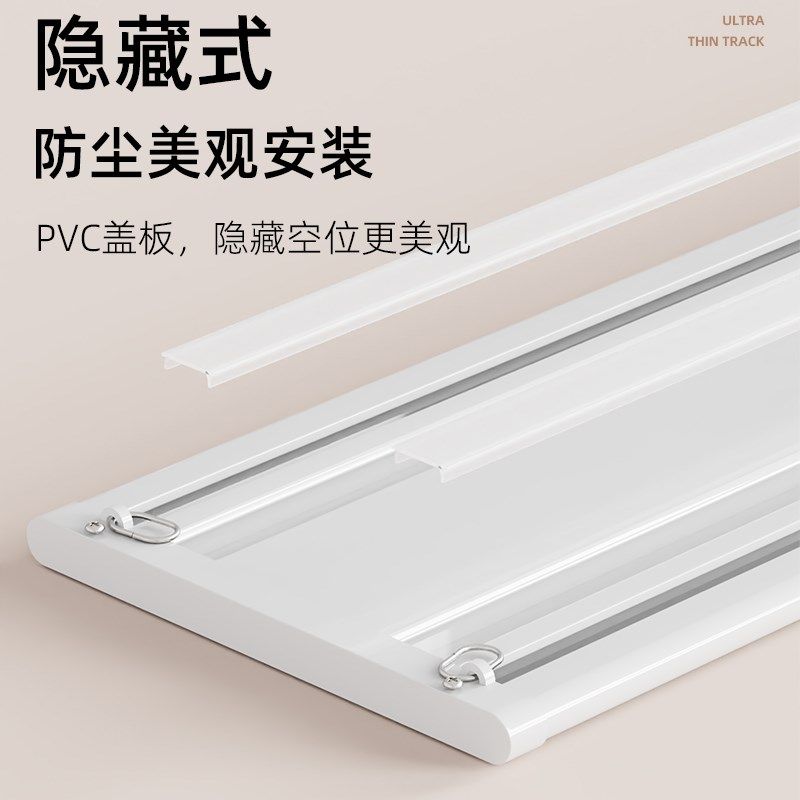 超薄双排窗帘轨道窗帘一整套挂钩式G隐形滑轨顶装双轨静音杆滑道