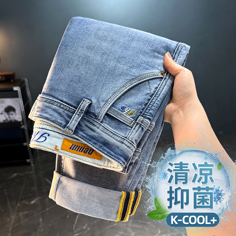 夏天牛仔裤男夏季薄款2025新款修身弹力男士直筒小脚九分长裤子潮