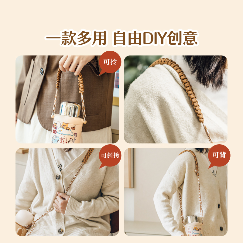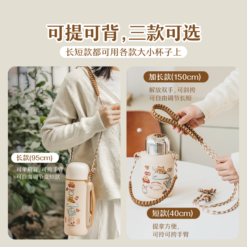 树可水杯编织提绳水壶吊挂绳水瓶手绳带子可伸缩长短款保温杯杯套