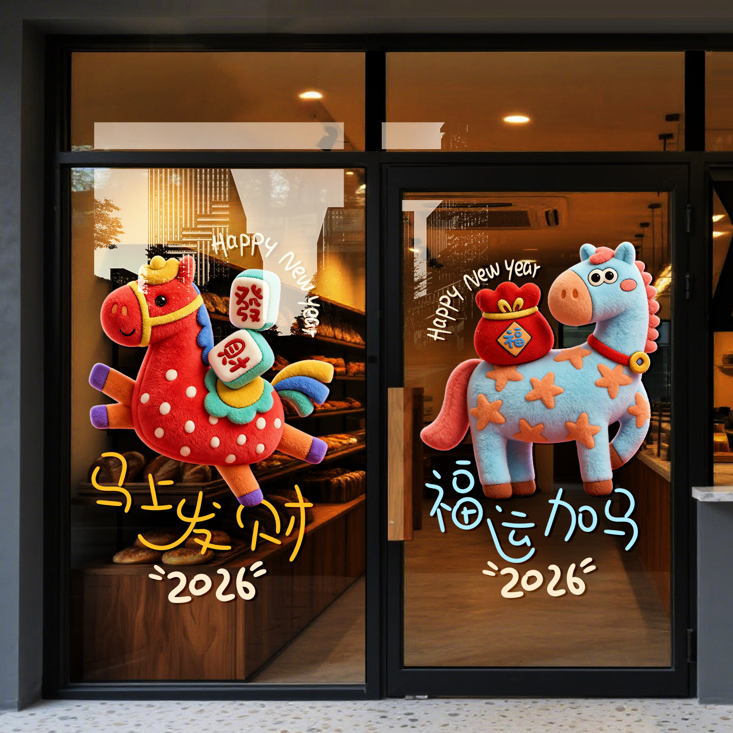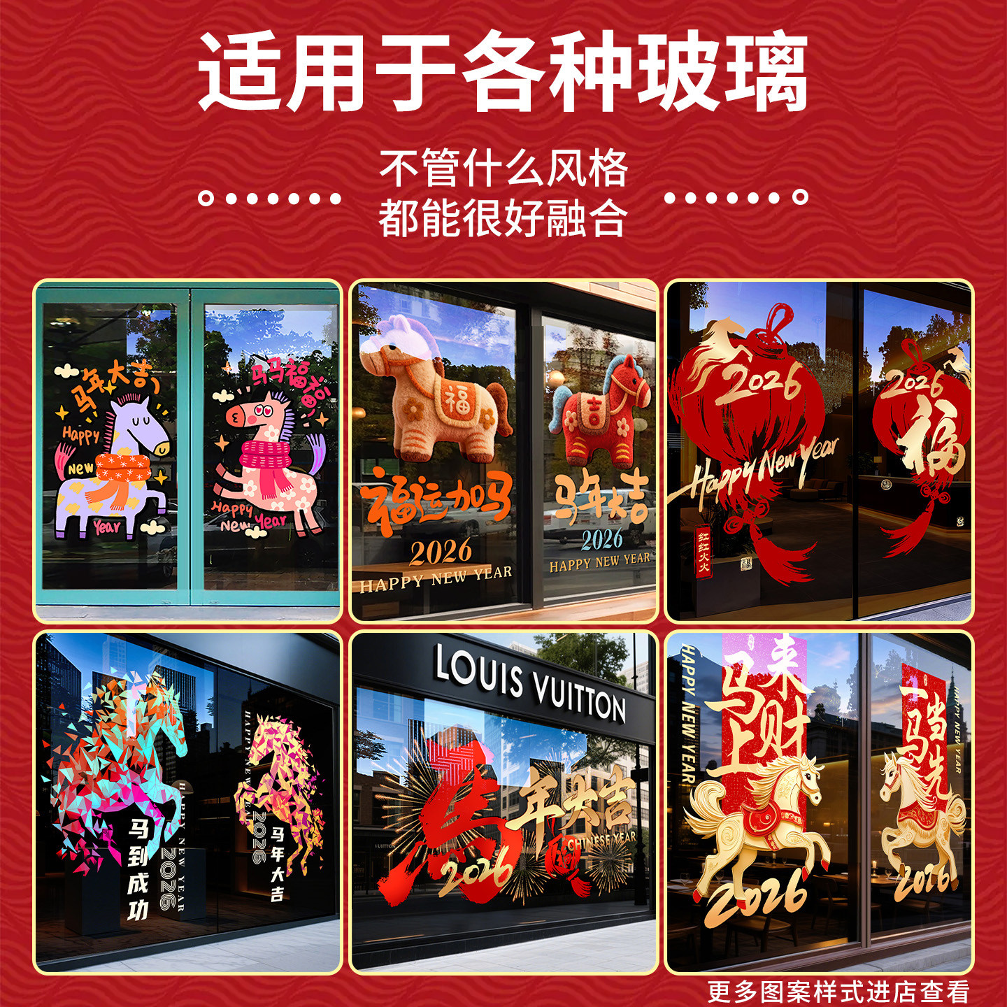 2026新款马年装饰窗花静电玻璃贴过新年春节氛围布置橱窗贴纸门贴