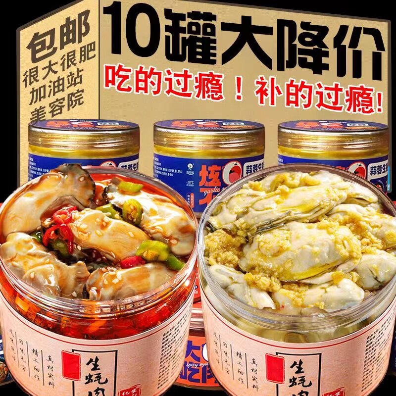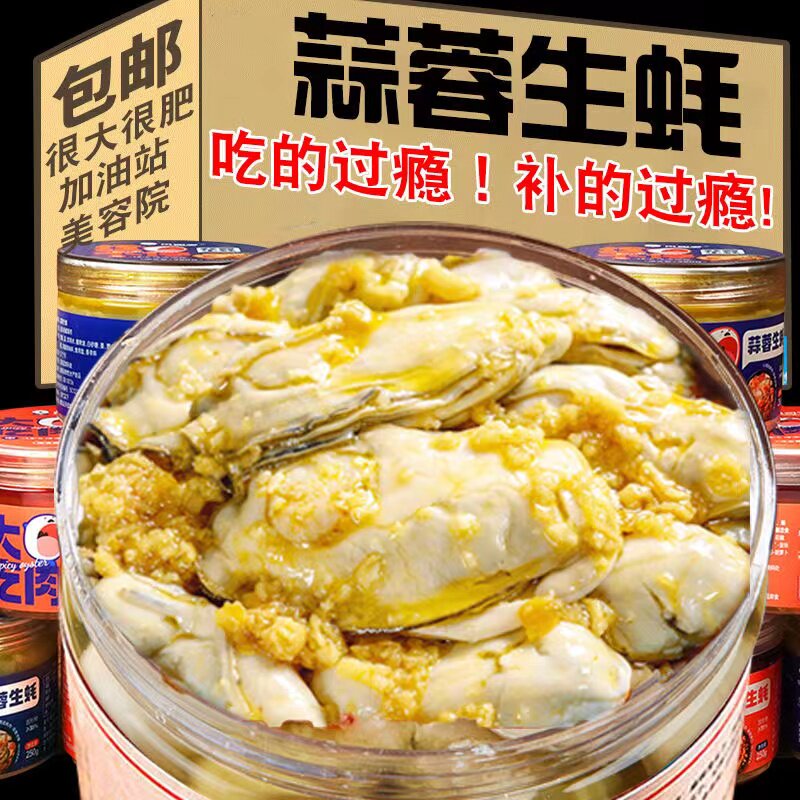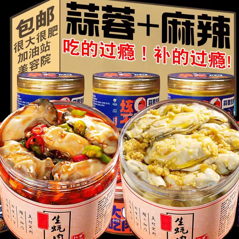 蒜蓉生蚝罐头即食麻辣小海鲜熟食新鲜海蛎子生蚝肉网红零食下饭菜