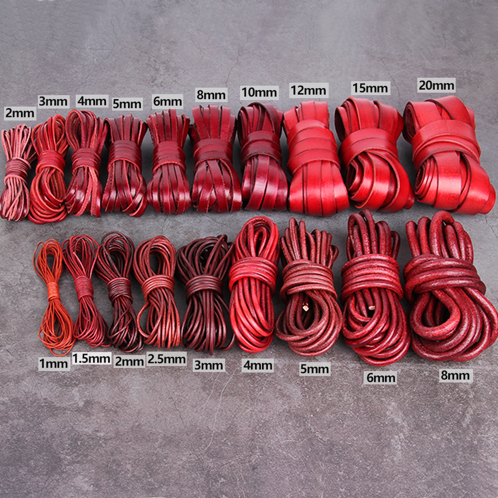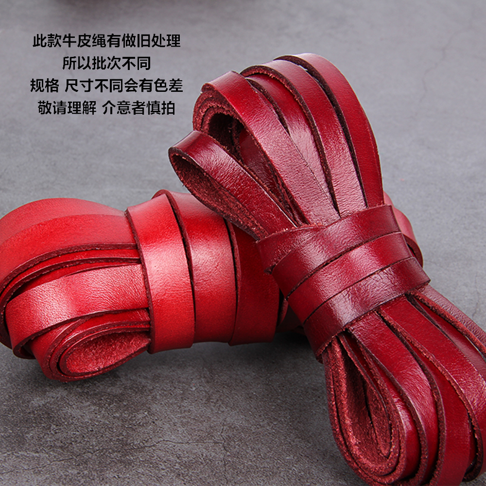 头层扁牛皮复古做旧红棕色圆牛皮绳真皮绳DIY材料手链项链饰品绳