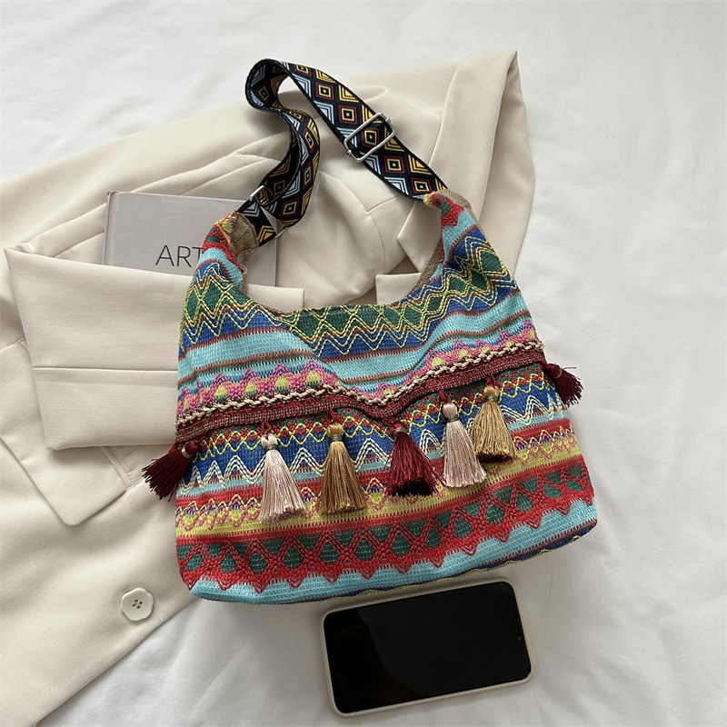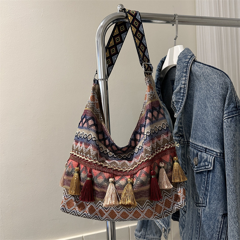 潮流复古斜挎包包女2024春季新款民族风流苏单肩女包大容量托特包