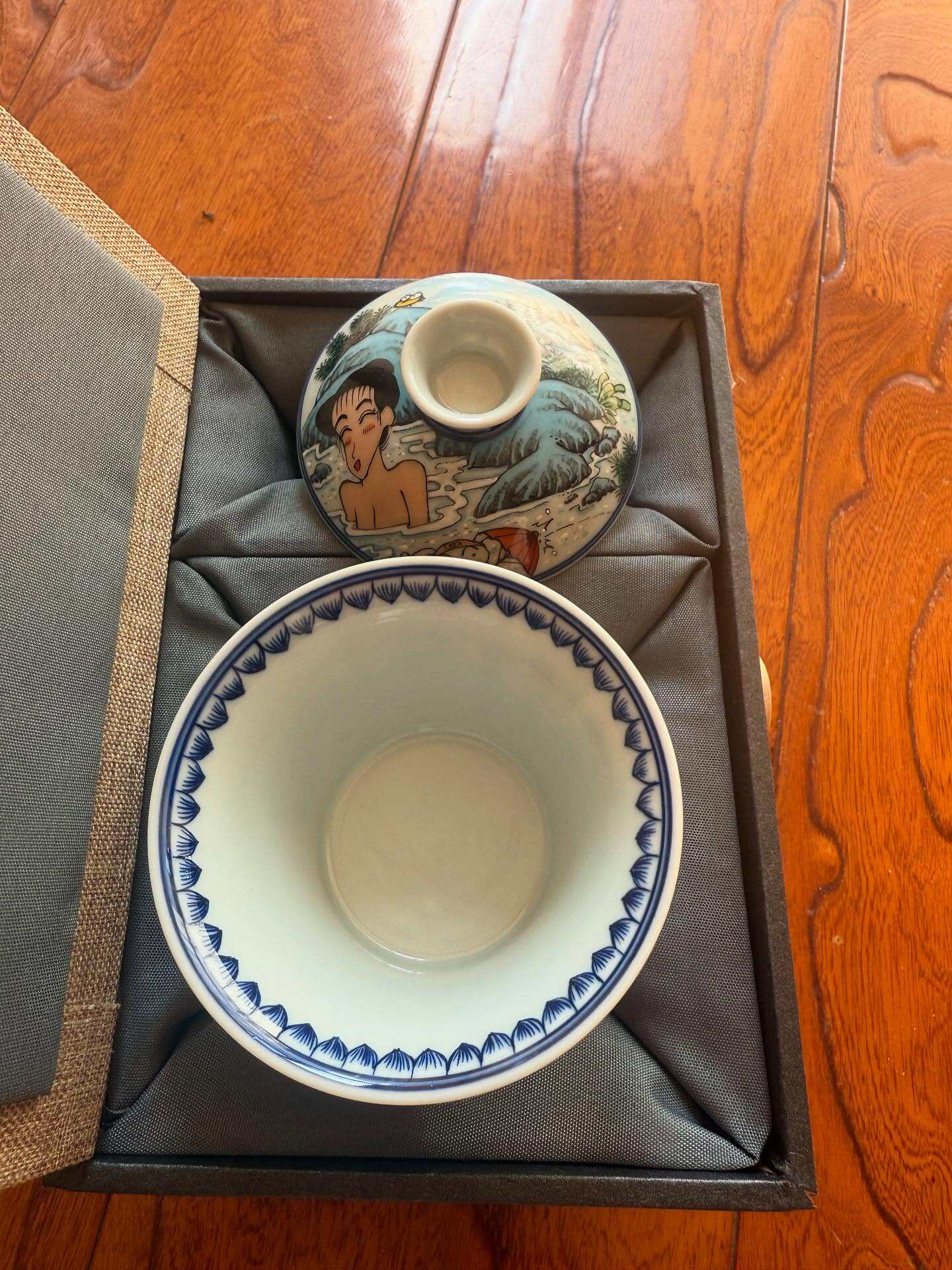 蜡笔小新陶瓷盖碗三才茶杯家用泡茶碗大容量功夫茶具