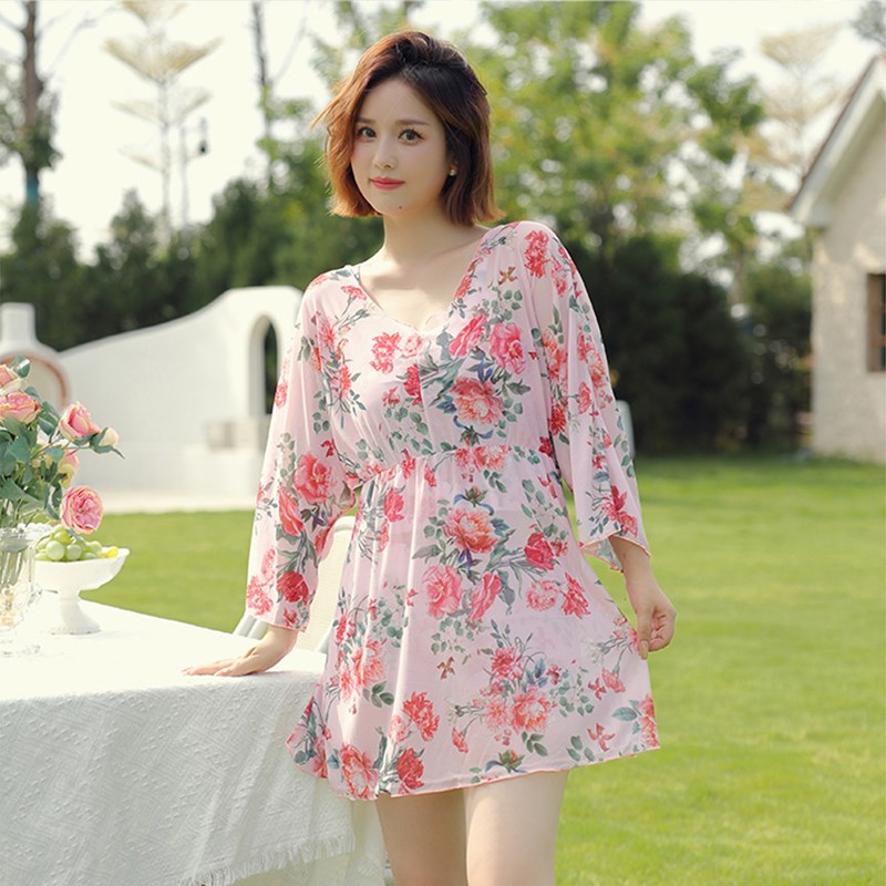 泳衣女中年妈妈分体大码三件套遮肚肉显瘦泡温泉保守女士长辈泳装