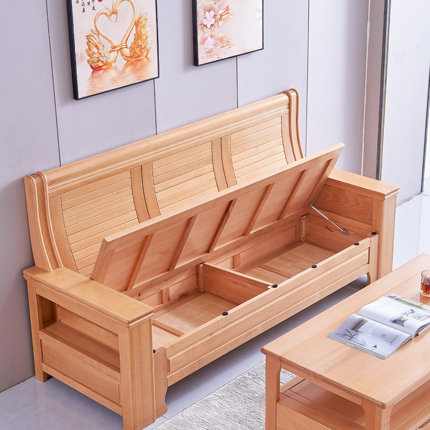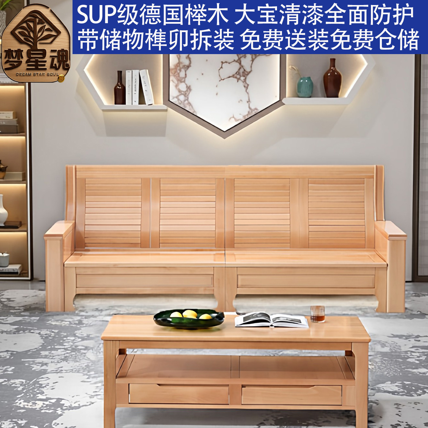 梦星魂榉木全实木储物沙发