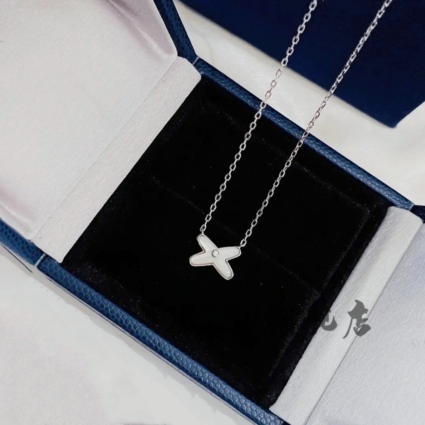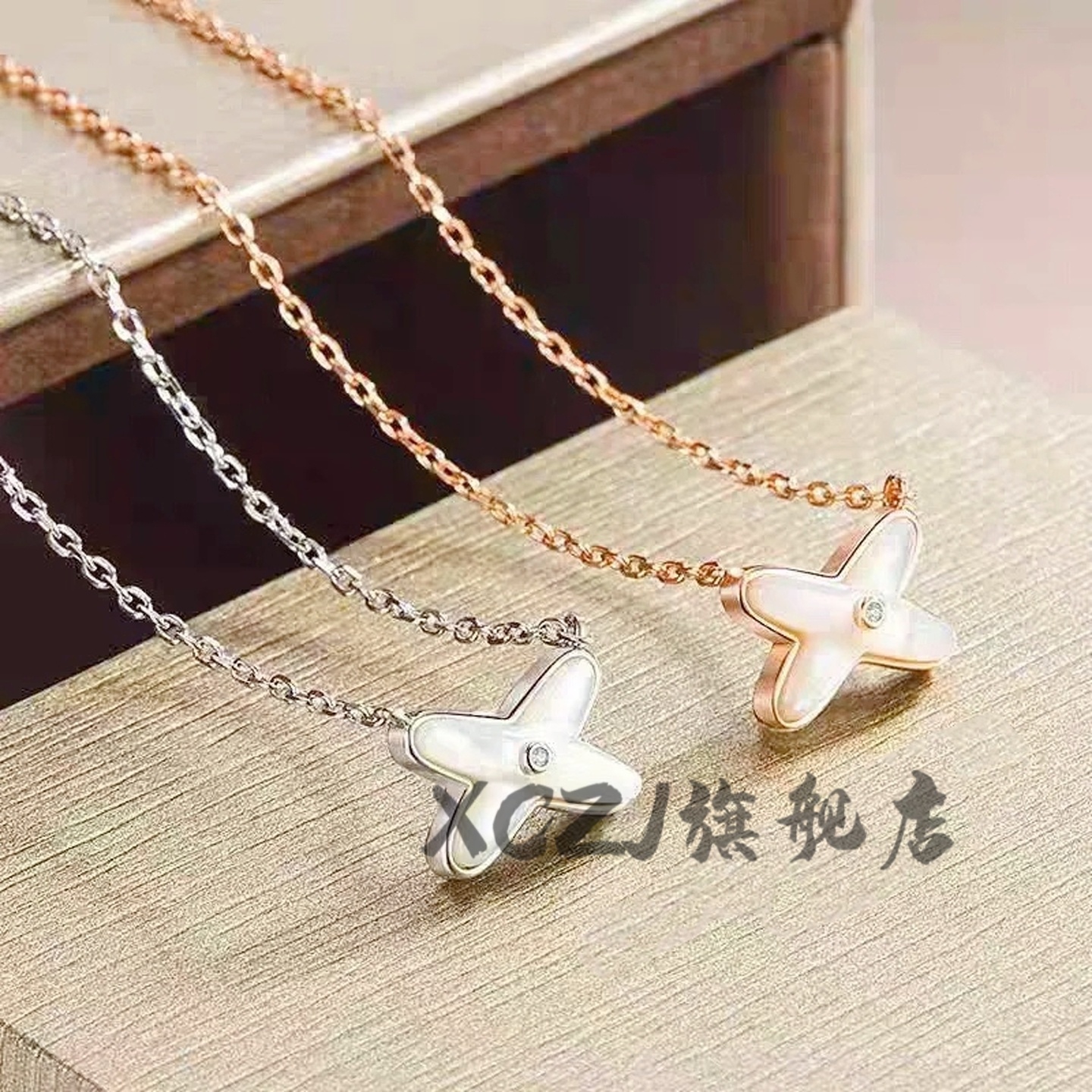 XCZJ吊坠Liens镶钻X项链18k玫瑰金白贝母锁骨链七夕情人节礼物女