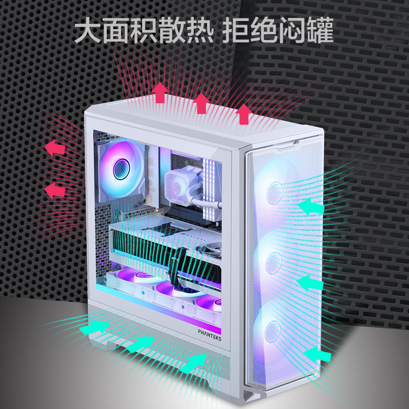 PHANTEKS追风者G400A白中塔ATX台式机TypeC配4风扇电脑玻璃机箱