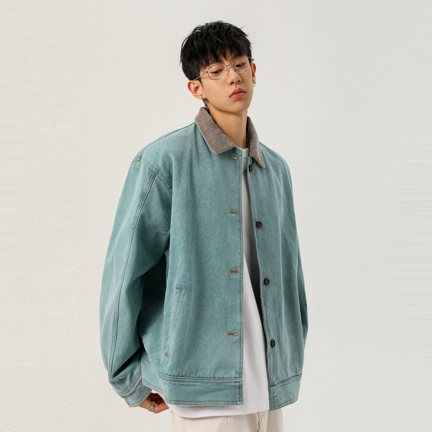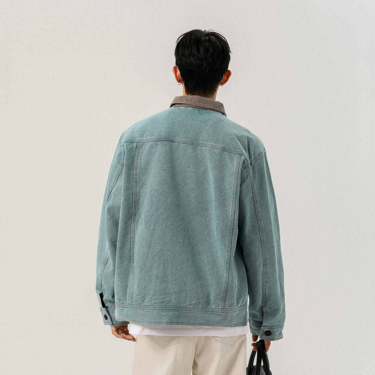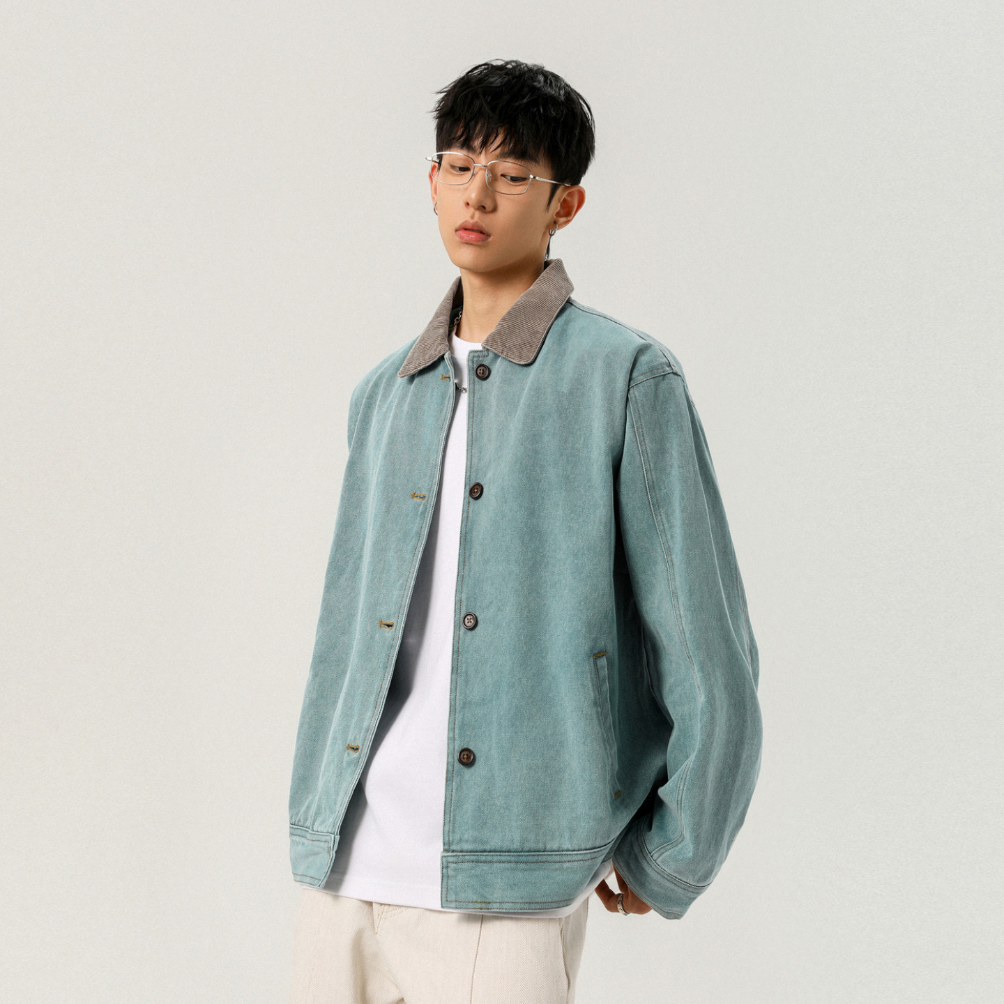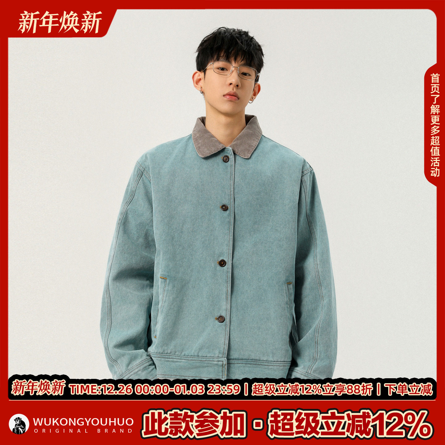 悟空有货美式复古做旧孔雀绿水洗夹克男女cleanfit底特律短款外套