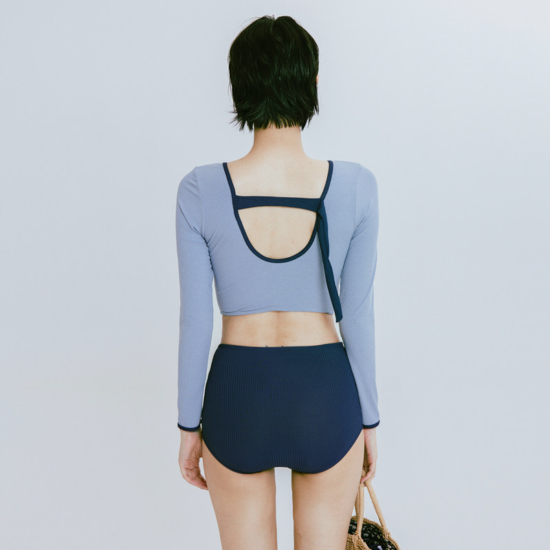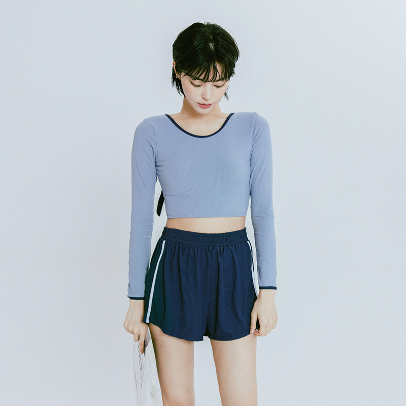 蓝色大门-W小调长袖运动遮肚显瘦平角裤三件套温泉游泳衣女新款