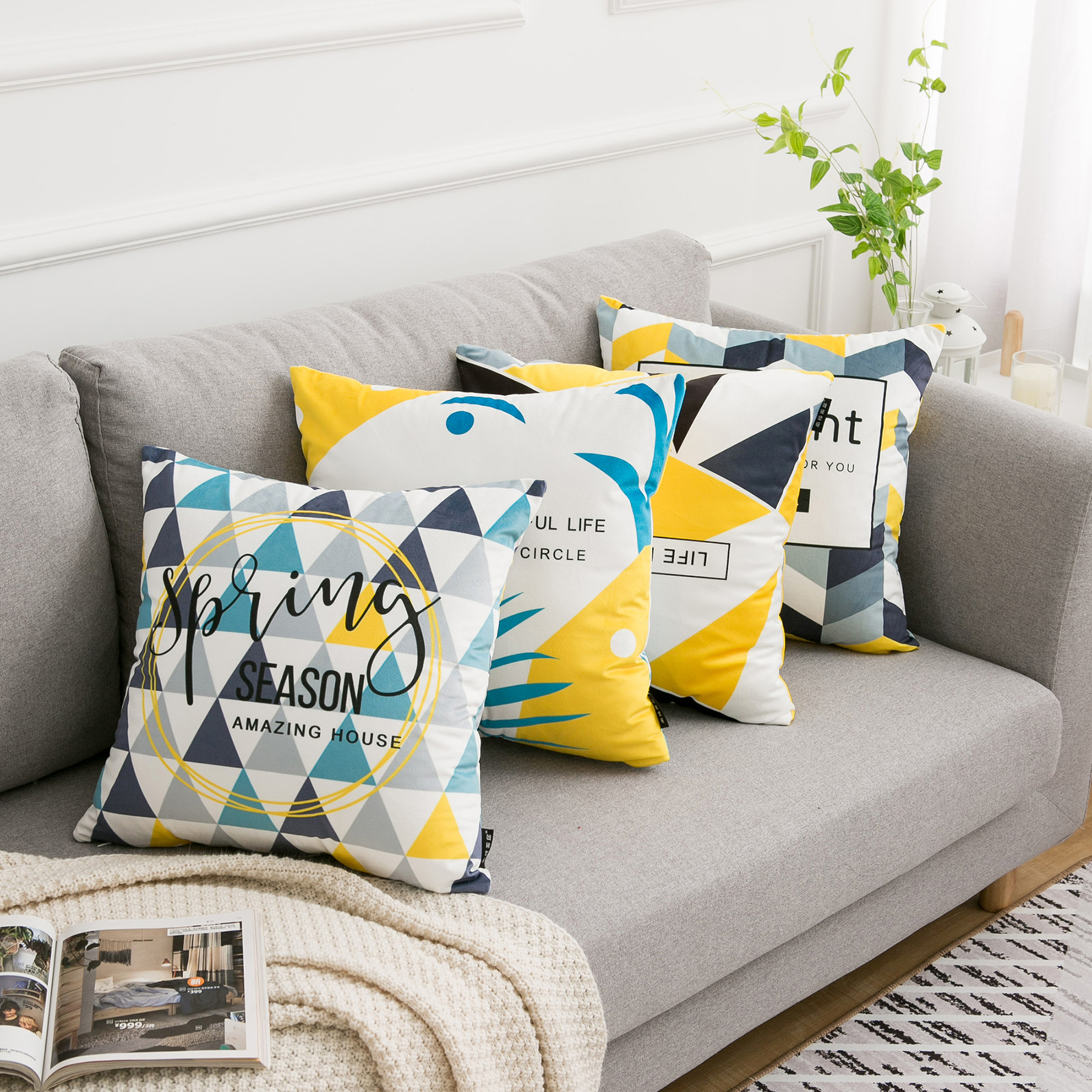 抱枕黄色北欧绒面布艺靠垫ins简约几何沙发靠枕套客厅样板房靠背