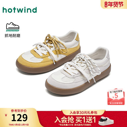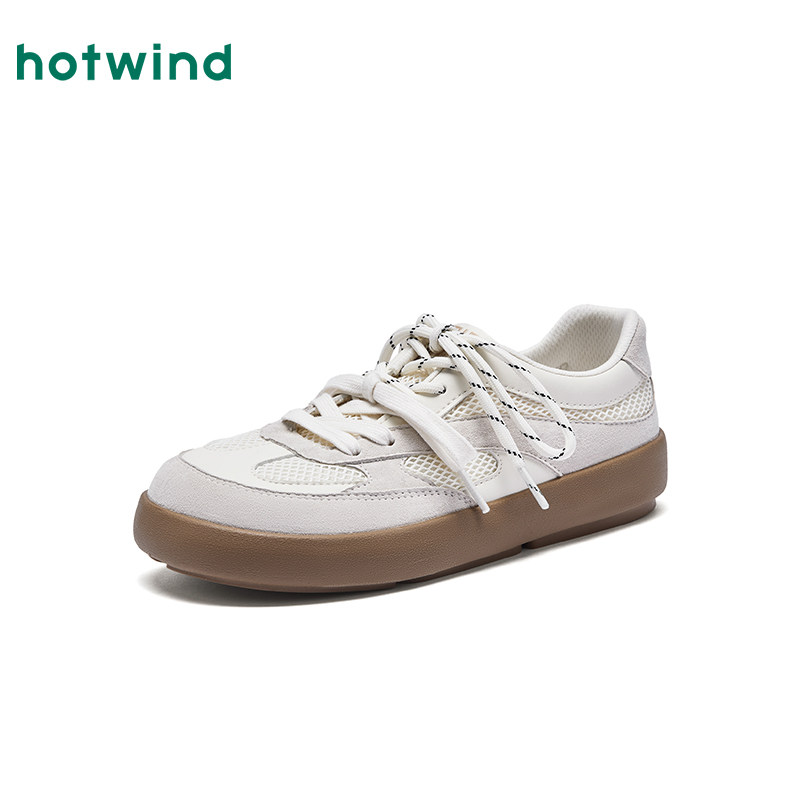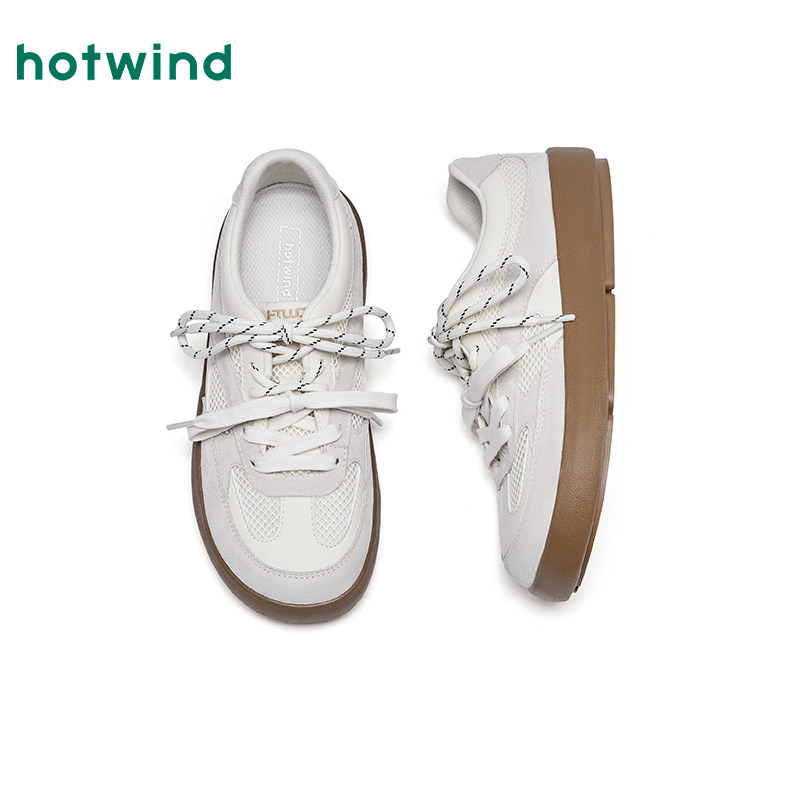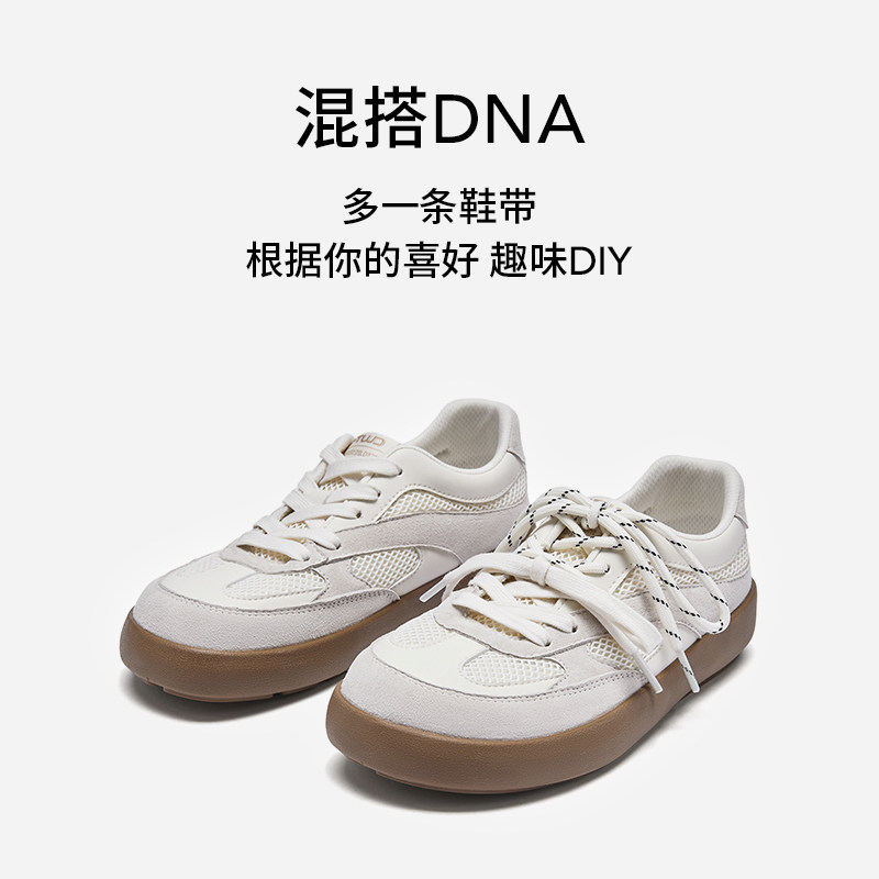 热风百搭德训鞋女2026年春季新款厚底网面休闲鞋透气小白鞋女鞋子