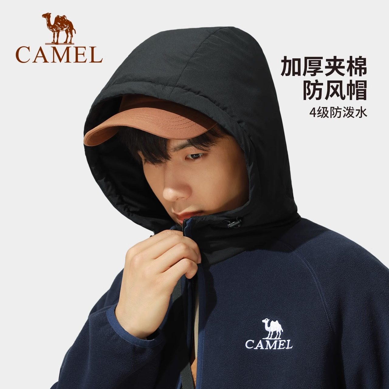骆驼抓绒衣男女新款防静电连帽保暖摇粒绒冲锋衣内胆外套