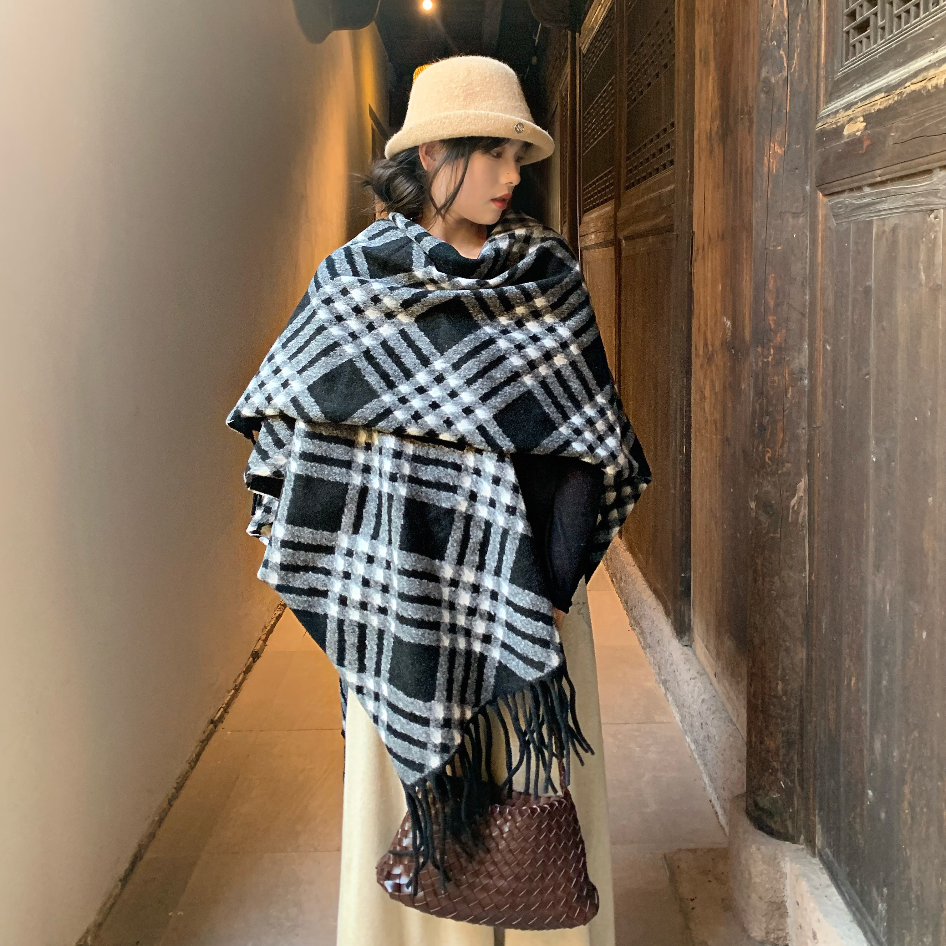 法式优雅!陈奶奶毛呢慵懒风披肩围巾两用新款大气秋冬季保暖百搭