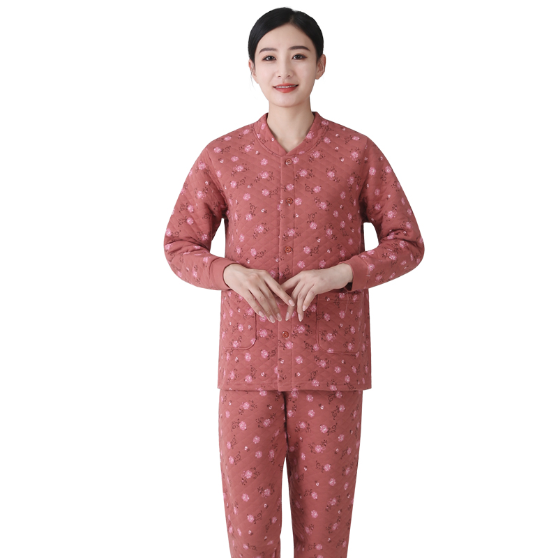 女士夹棉对襟开衫家居服保暖套装