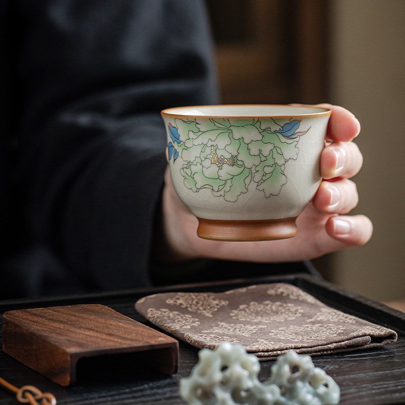 米黄汝窑茶c杯主人杯个人专用单茶盏复古品茗杯喝泡茶高档陶瓷大