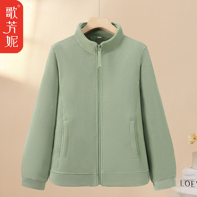 中老年女装立领抓绒衣秋冬羊羔绒卫衣妈妈加绒加厚奥粒绒棉衣外套