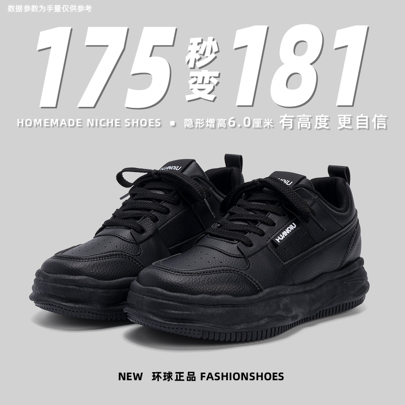 环球隐形内增高男鞋2025新款夏季透气休闲板鞋百搭厚底运动小黑鞋