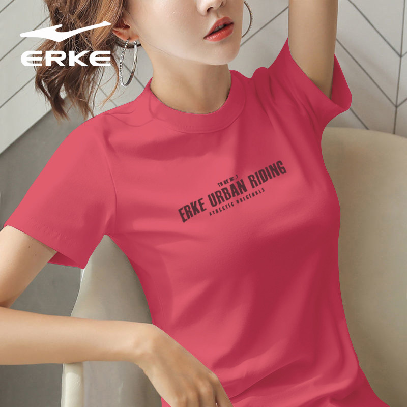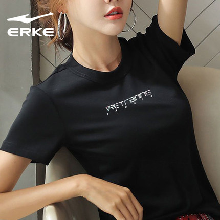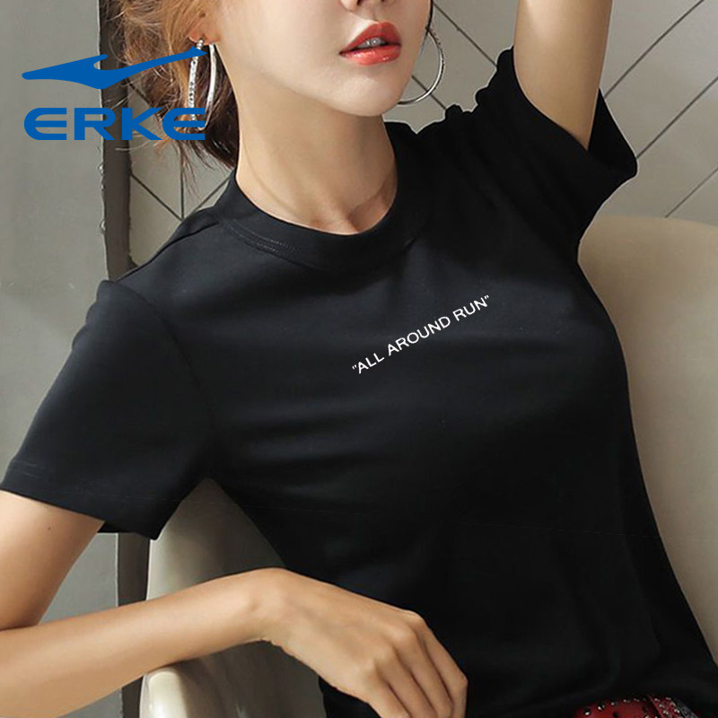 鸿星尔克红星黑色短袖女2025夏季新款官网正品修身运动棉质T恤女