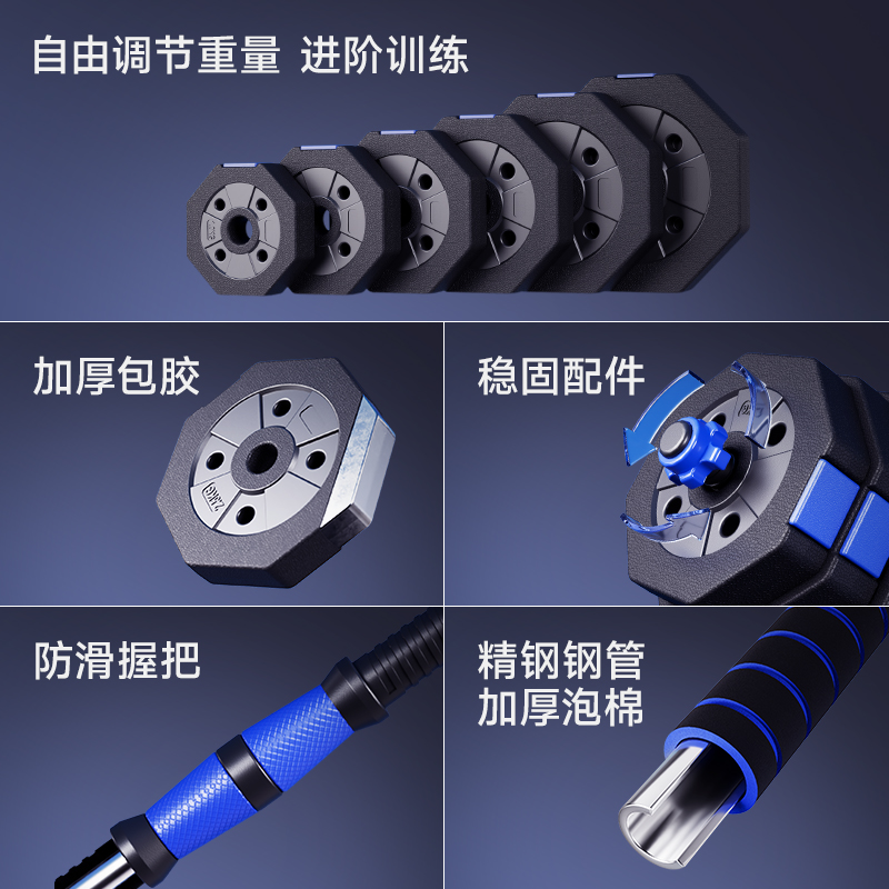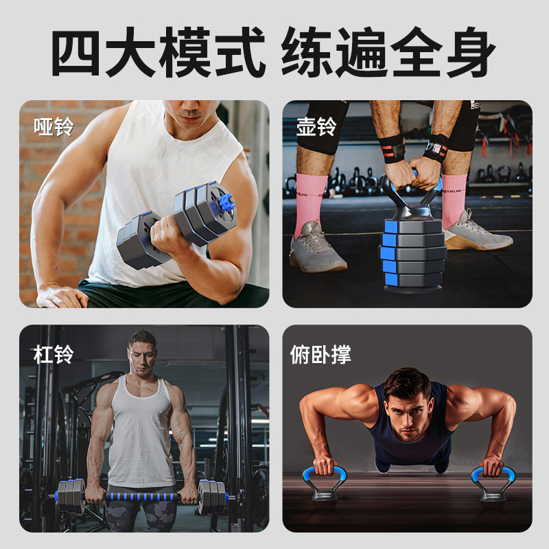 哑铃男士健身家用可调节重量20公斤一对青少年锻炼男宿舍杠铃组合