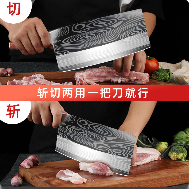 行冠切菜刀家用超快锋利切片切肉刀厨师专用斩切两用刀厨房不锈钢
