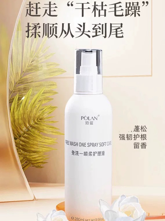 POLAN珀蓝免洗一喷柔护理液280ml紫色洗发水护发喷雾修复毛躁留香