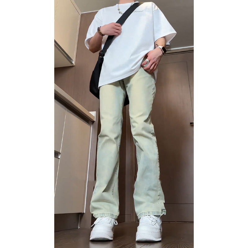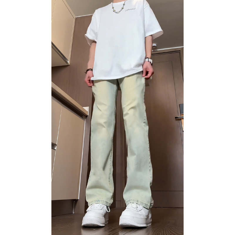 美式复古vibe裤子男小众设计感水洗黄泥牛仔裤修身弹力窄版直筒裤