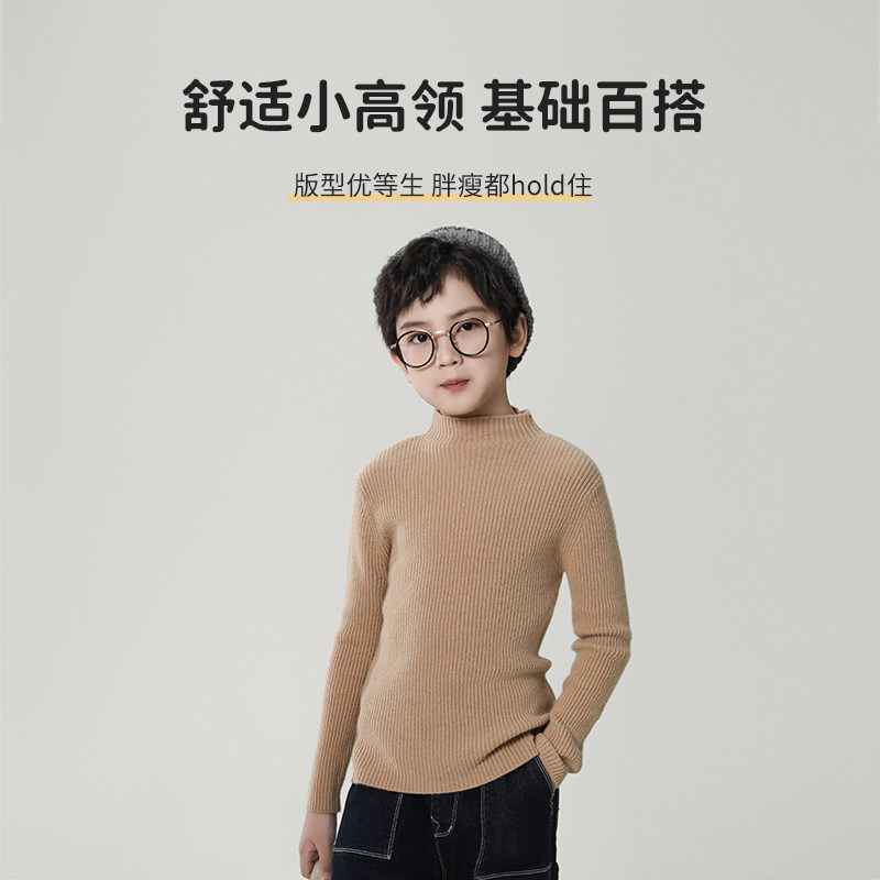 儿童纯色细抽条羊毛衫男女童韩版加厚修身针织衫宝宝套头打底衫