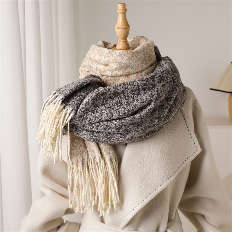 韩版拼色秋冬季格纹仿羊绒披肩围脖男女通用保暖时尚通勤流苏围巾