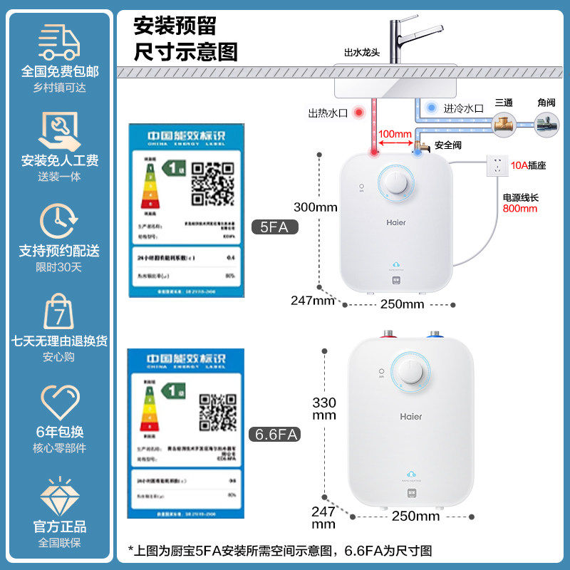 海尔小厨宝电热水器官方迷你厨房家用5FA台下热水宝6.6FA