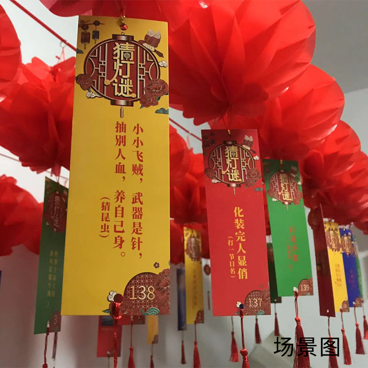 元宵节猜灯谜卡片猜灯谜条挂纸卡元宵节灯谜灯笼春节商场装饰学校