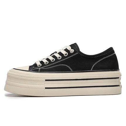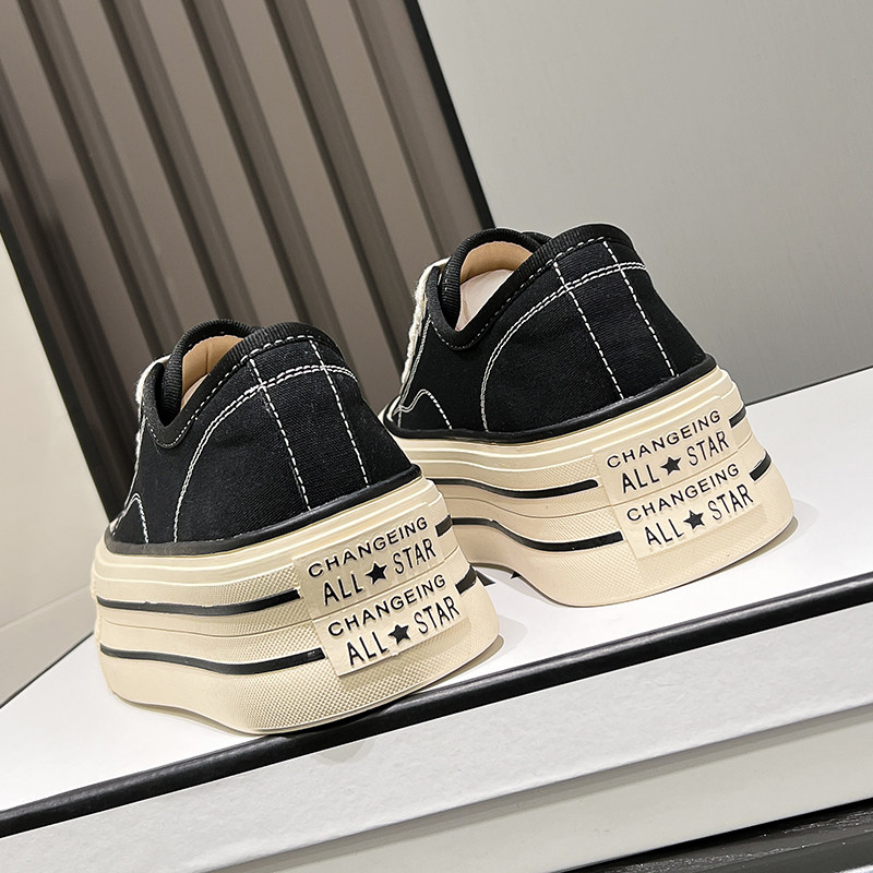 厚底内增高6CM小个子帆布鞋女2025新款春秋复古爆款百搭松糕板鞋