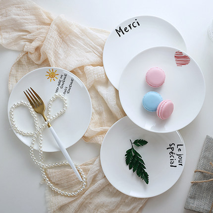 4个7英寸盘 创意陶瓷盘子西餐盘家用菜碟意面盘蛋糕点心盘水果盘