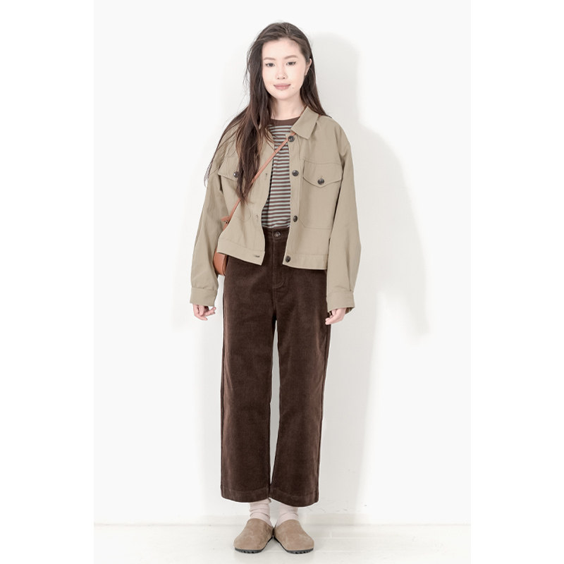 KNgs 春秋日系复古风宽松高腰灯芯绒工装裤九分裤直筒休闲裤女