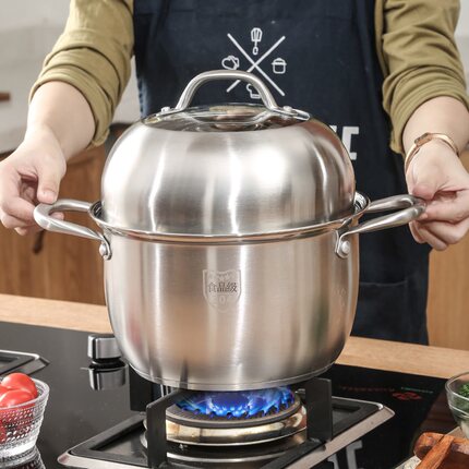 304不锈钢三层蒸锅加厚复底汤锅二层炖锅家用商大容量熬汤烧菜锅
