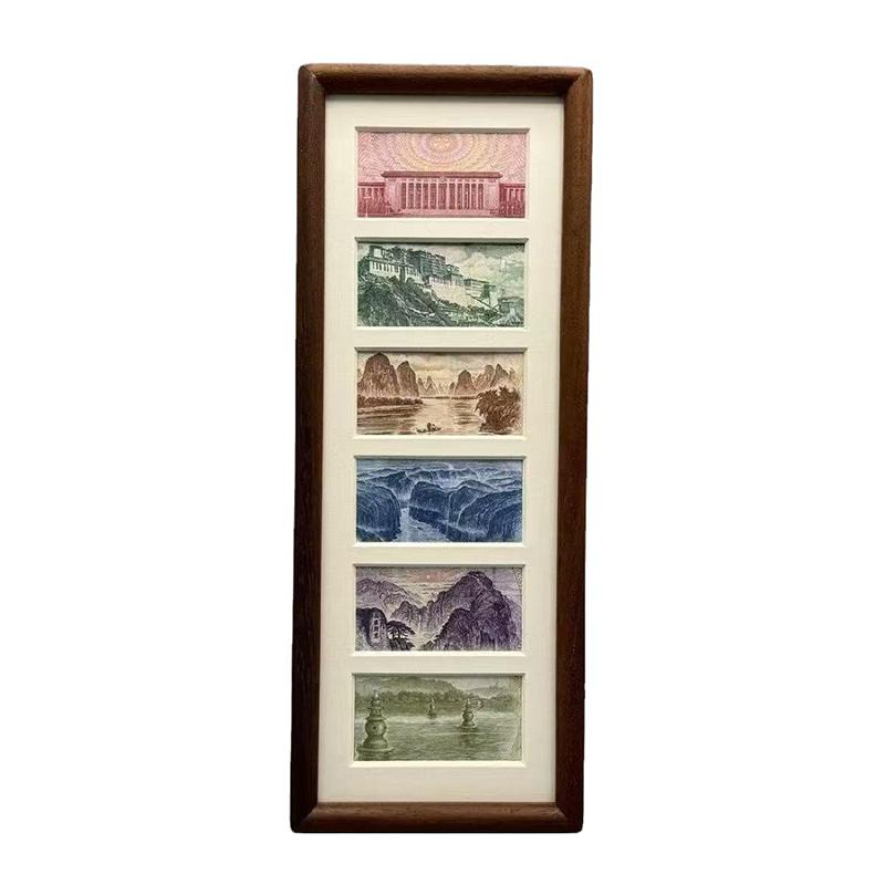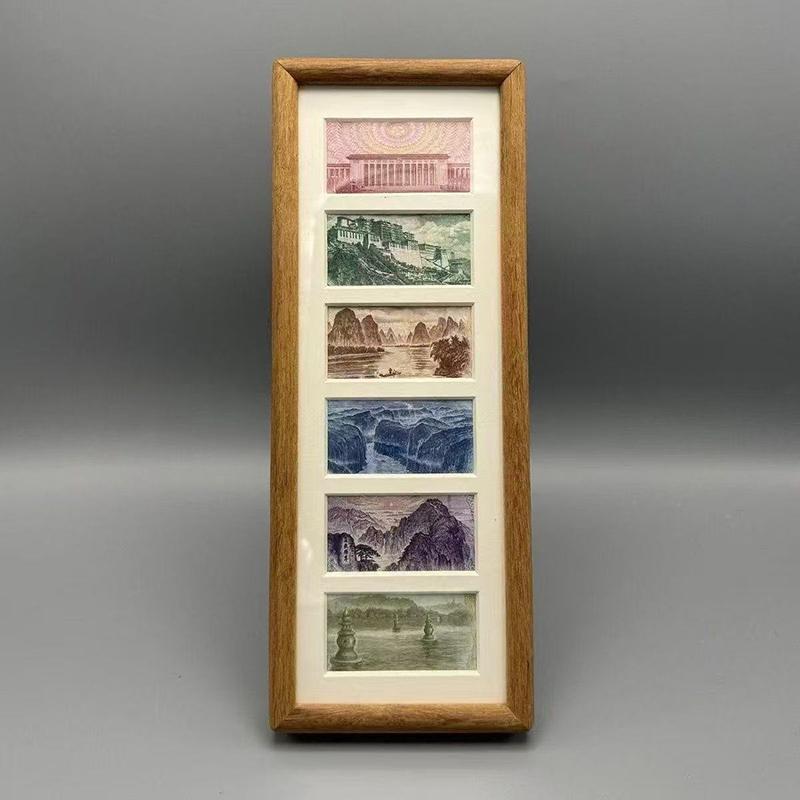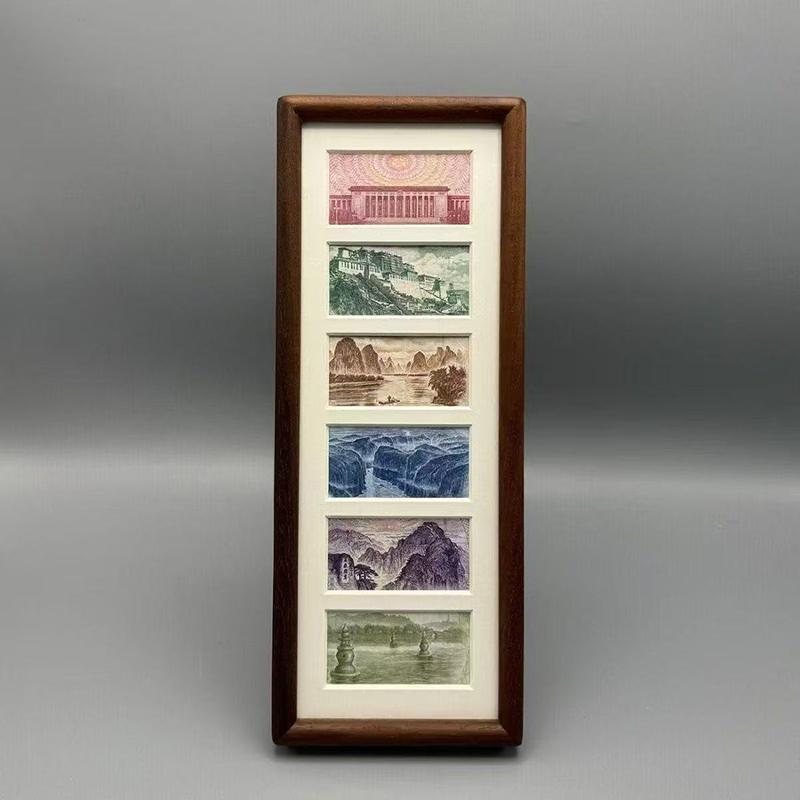 文创邮票增运多金画框摆台六连框实木榫卯字画相框人民币装饰画钱