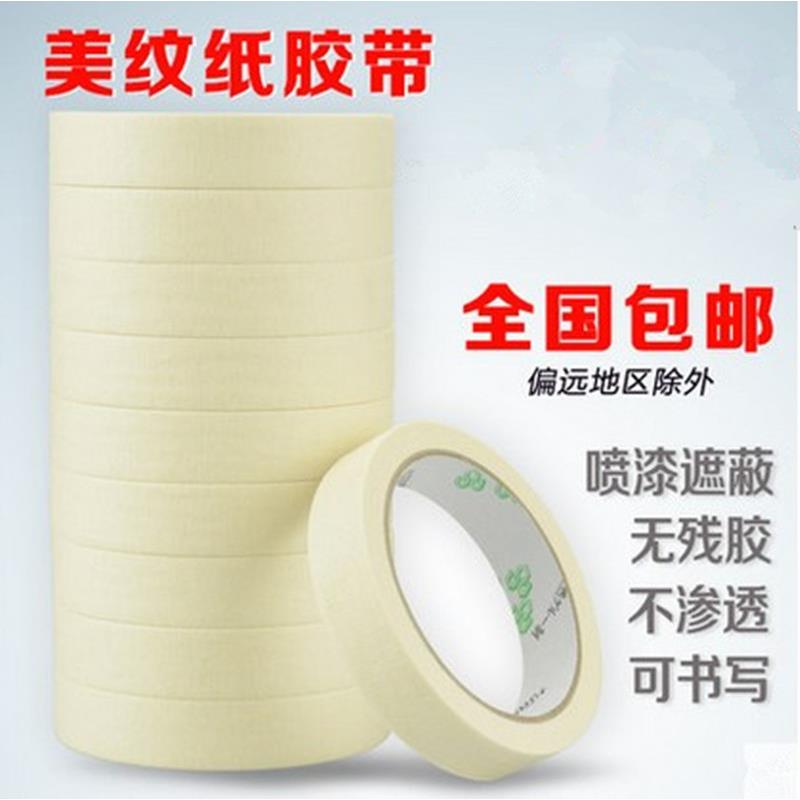 包邮平纹美纹纸胶带 米黄色美纹胶带喷漆遮蔽可写字美术用品