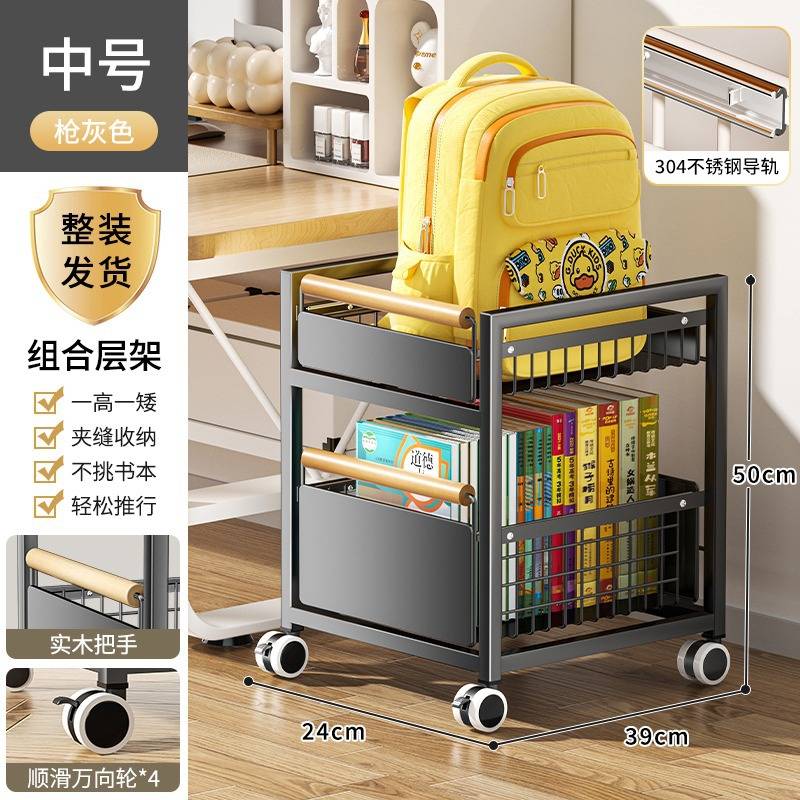 书包置物架可移动家用夹缝放包小推车桌下带轮书本收纳神器书架柜