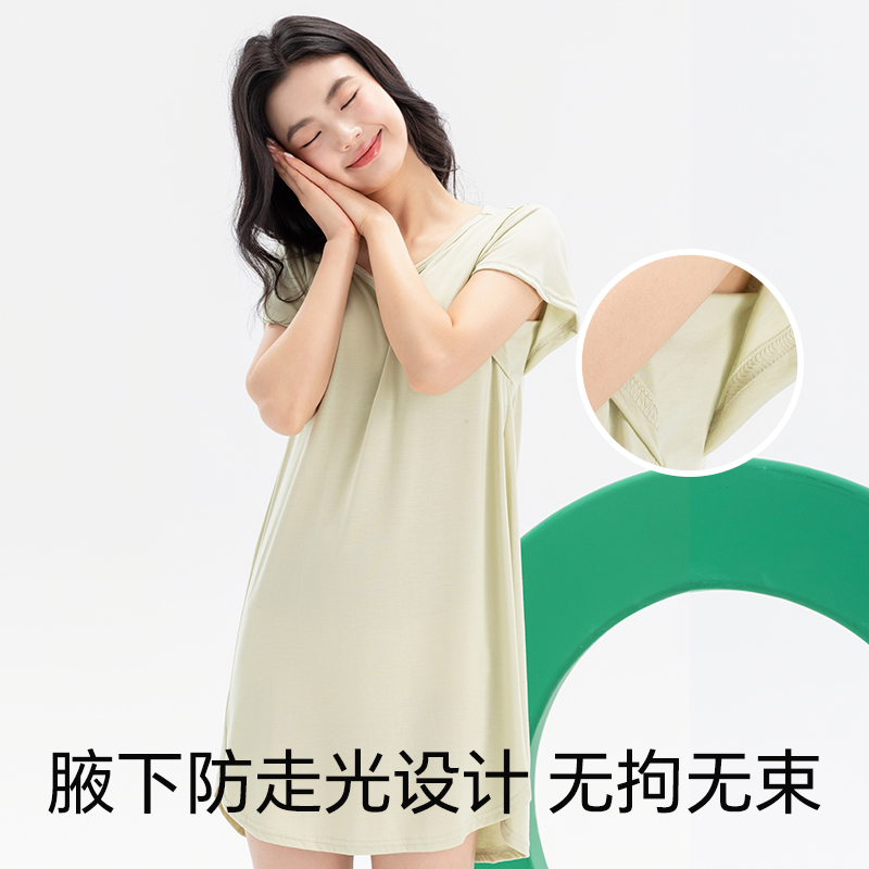 莫代尔短袖睡裙女夏季新款带胸垫一体免穿文胸宽松大码家居服睡衣
