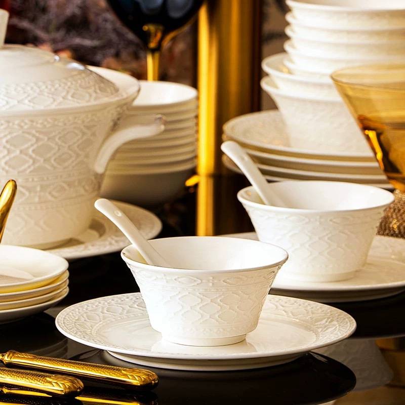 2024新款景德镇陶瓷餐具釉下彩可微波骨瓷碗盘结婚送礼碗碟套装礼