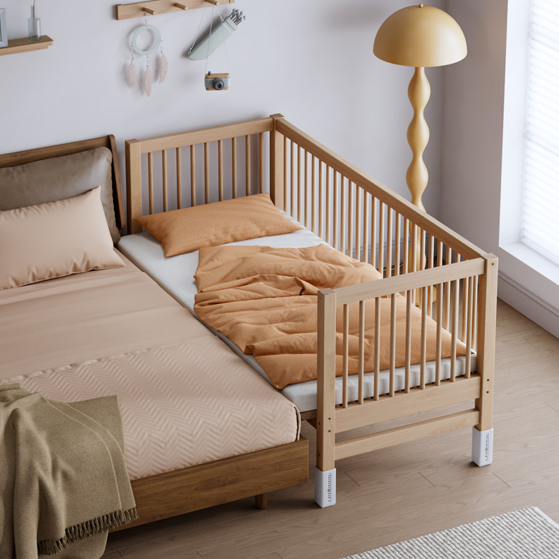 儿童拼接床高低可调实木婴儿加宽床带护栏升降宝宝边床单人床榉木