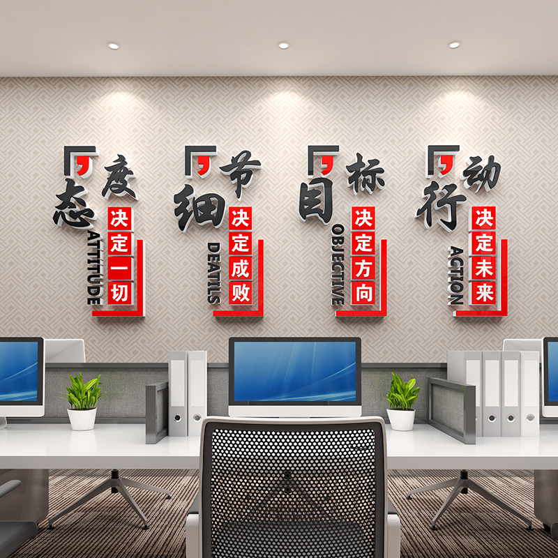 公司办公室背景墙装饰企业会议室文化墙贴纸画布置团队励志标语面