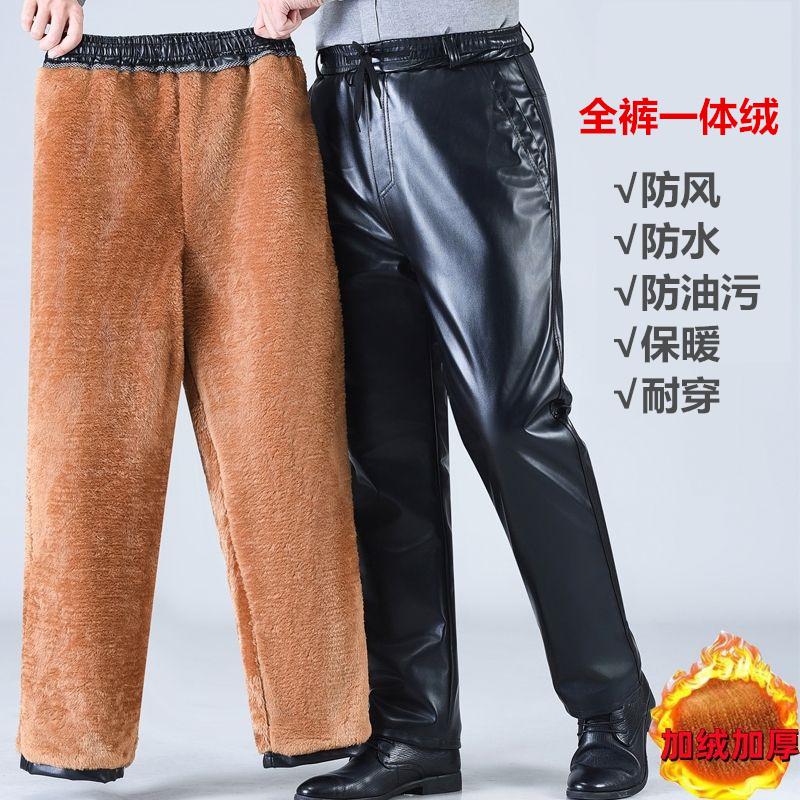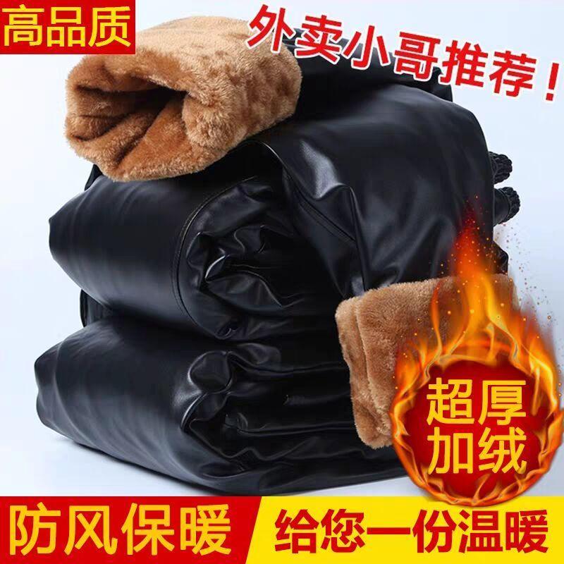 加绒加厚皮裤男士防水防风保暖宽松弹力长裤骑行代驾外卖穿工作裤