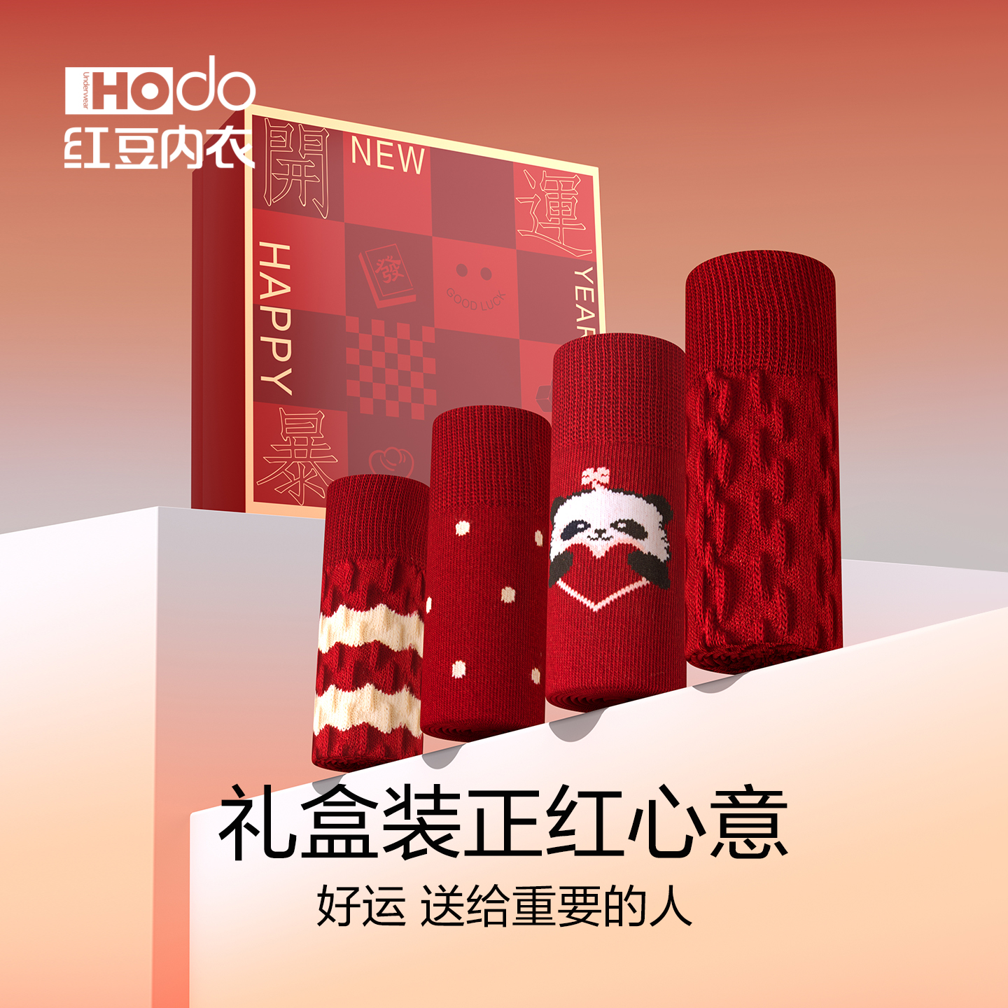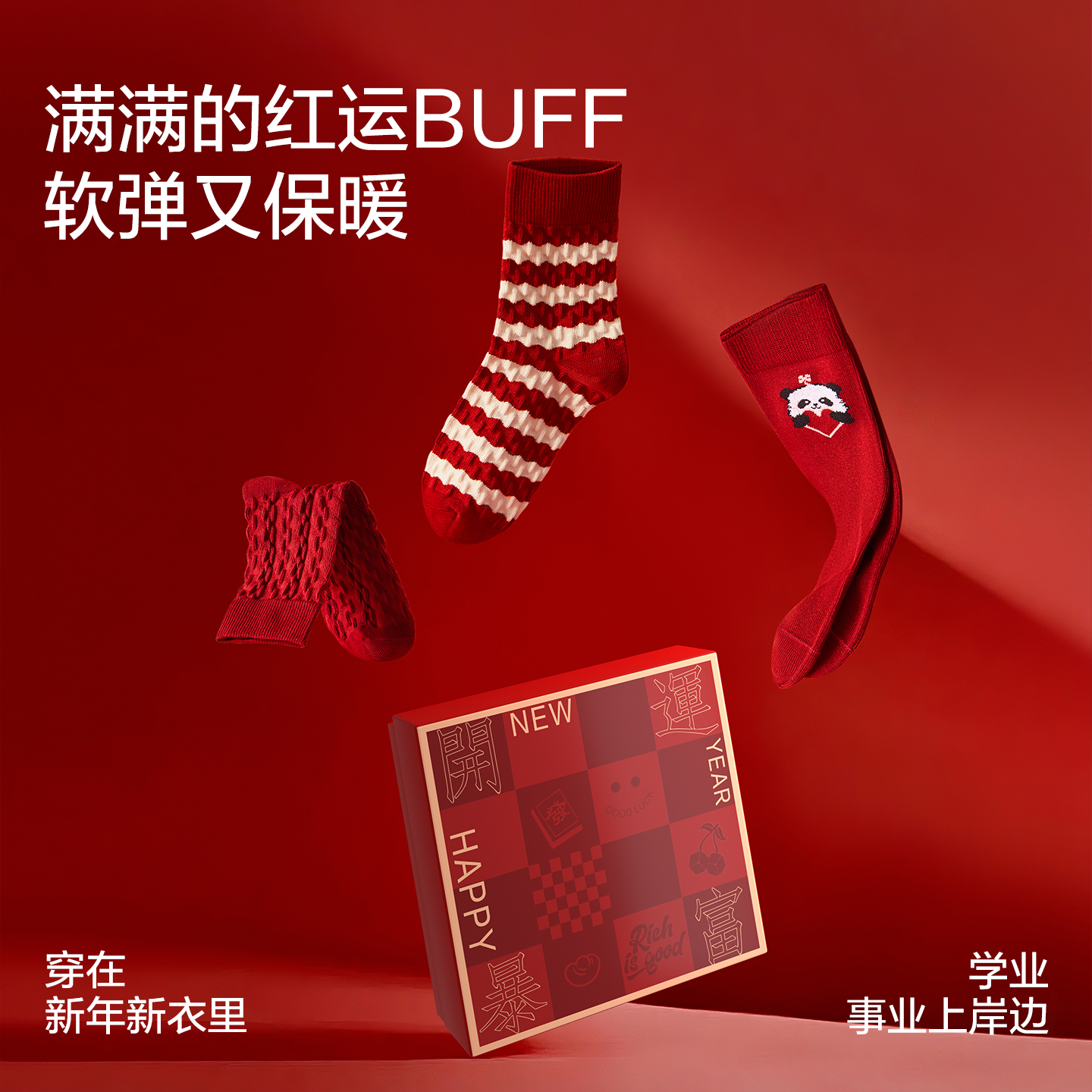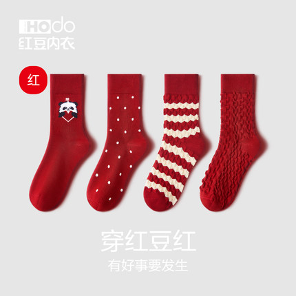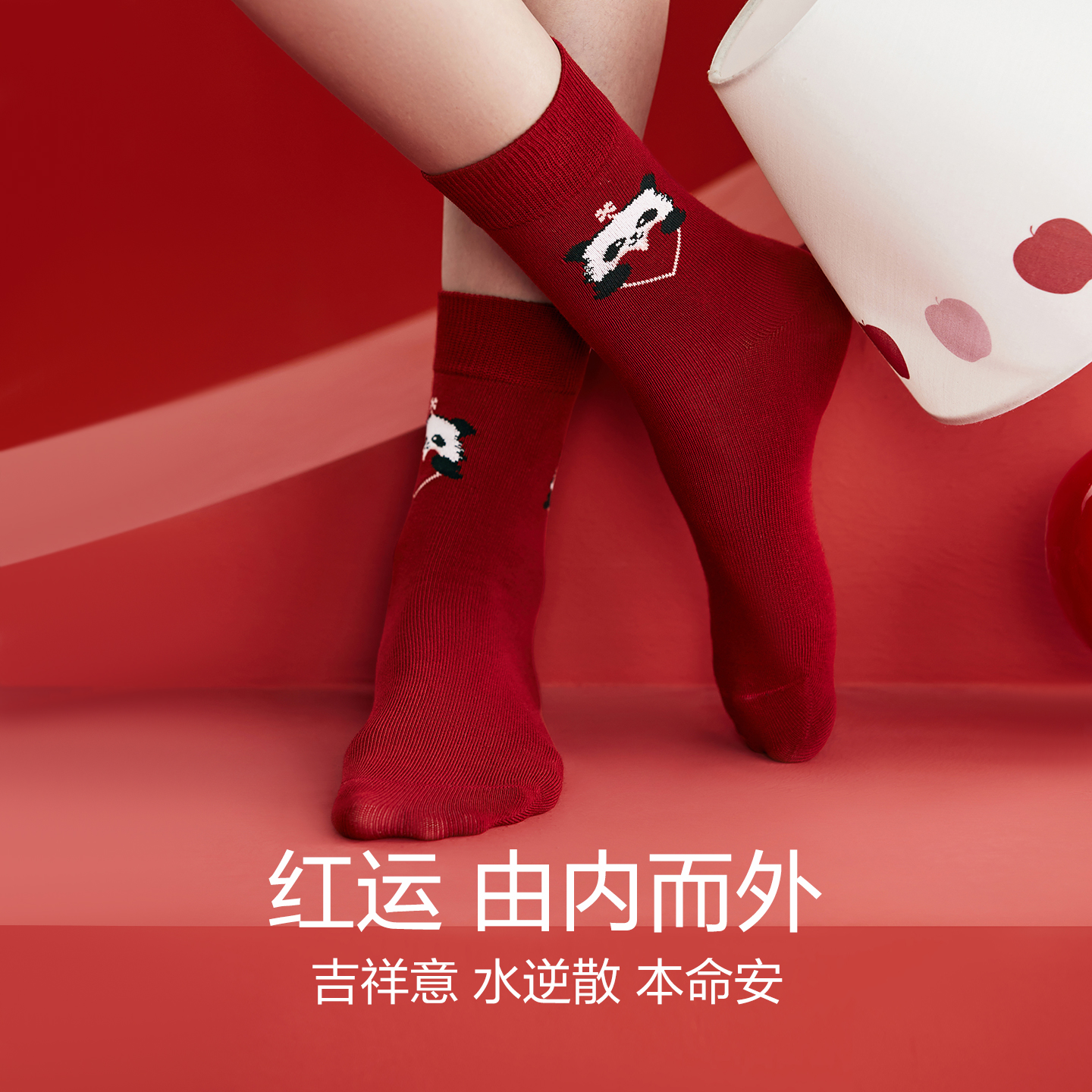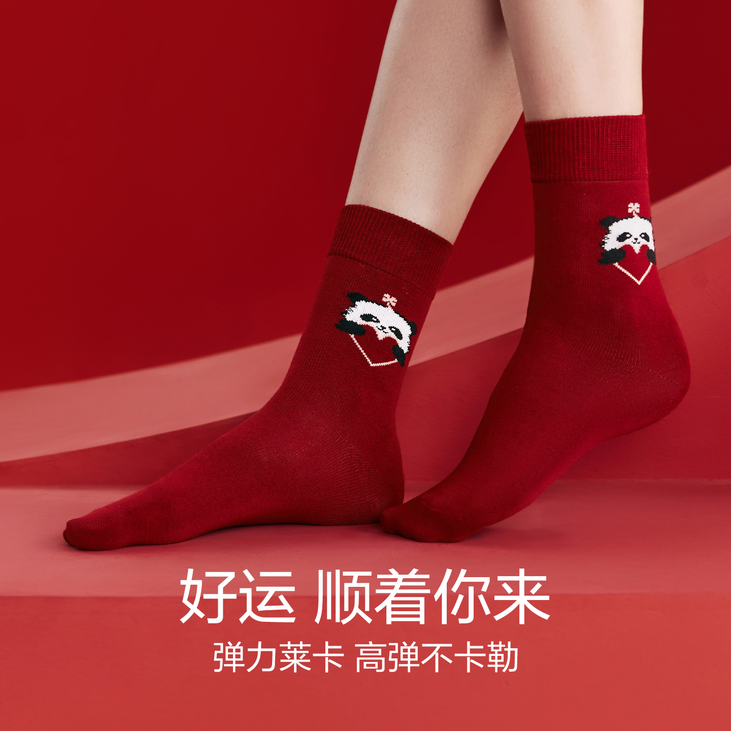 女暗红色棉袜本命年10A抗菌中筒袜新年新婚秋冬长袜打底袜子礼盒